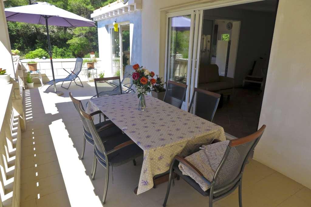 DŮM "MAJA" PRO ODPOČINEK DUŠE A TĚLA se nachází v zátoce Bratinja luka, 8 km po makadamové silnici od obce Žrnovo, ostrov KORČULA. Parkoviště se nachází 100 metrů od domu. Nabízíme dva apartmány, jeden pro 4 osoby (nižší úroveň) a druhý výše pro 4 1 osobu. V zátoce není žádná turistická vybavenost, žádné restaurace, obchody se nacházejí 8 až 12 km daleko, kromě výborné venkovské domácnosti s místními potravinami 5 km od zátoky, na cestě do Žrnova. Vzhledem k blízkosti moře a mírné oblázkové pláže je dům zajímavý zejména pro rodiny s předškolními dětmi a pro ty, kteří hledají samotu a klid v květnu, červnu, září a říjnu. Vzhledem k tomu, že nabízíme polorobinsonský styl turistiky, je třeba zdůraznit nutnost šetřit vodou a omezit spotřebu elektřiny!