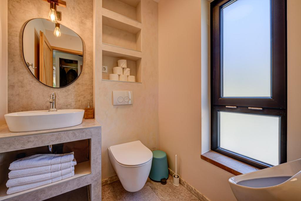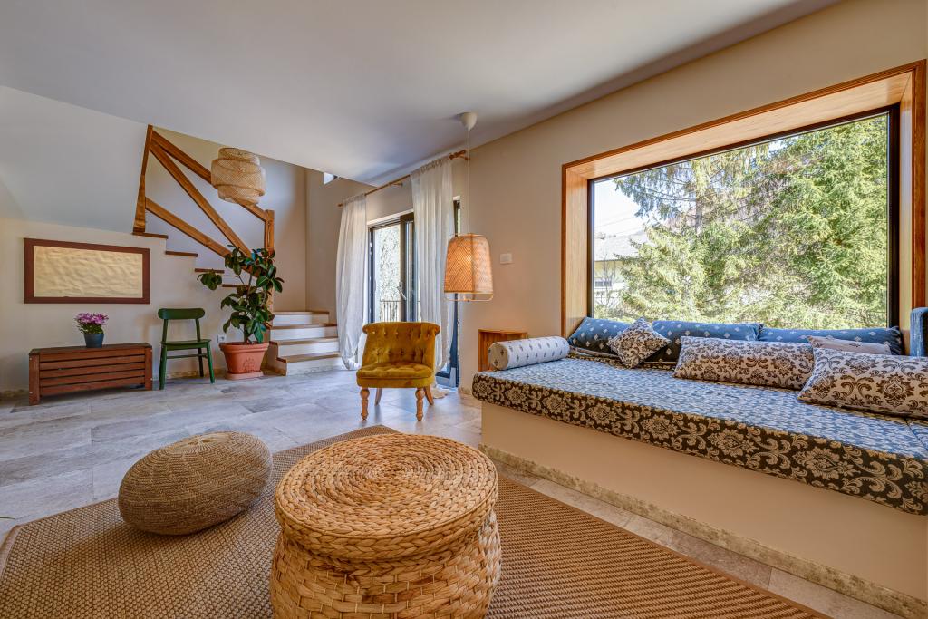 Dům je pohodlný a má vše, co můžete potřebovat pro městský pobyt v přírodě, včetně velkého venkovního prostoru s bazénem, venkovním wellness, grilem, domečkem na stromě a posezením.