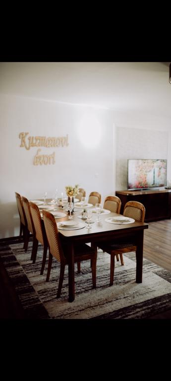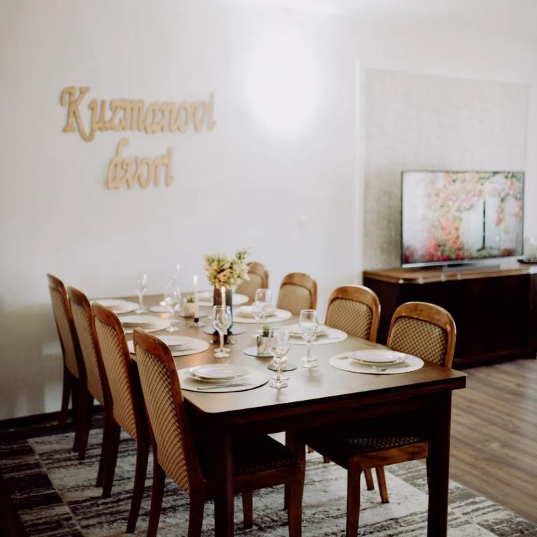 Užijte si sto let starou krásu, rekreační dům "Kuzmanovi dvori". Tato šokující vila zcela obstála ve zkoušce času. Stále rozpačitě stojí a rozvazuje si krátké vlasy. Dům je kompletně adaptován. Zachovala si svůj původní vnější vzhled. Interiér je přizpůsoben potřebám moderního člověka. Dvory se skládají ze dvou ložnic, velkého obývacího pokoje s jídelnou, kuchyní a koupelnou, dále vstupní haly a velké terasy s výhledem do upraveného dvora s původní architekturou. Dům je vyzdoben některými originálními kusy nábytku z rodinného dědictví a jedinečnými, masivními a ručně vyrobenými prvky. Prostorný obývací pokoj s jídelnou vám dává možnost relaxovat s velkou Android TV. Kouzlo ohně v krbu a knihy ve vašich rukou zní jako opravdová dovolená. Moderní a funkční kuchyně (lednice, mrazák, sporák, varná konvice, kávovar), prostorná koupelna s vanou a pračkou. Dům je pokryt neomezenou Wi-Fi sítí a na všech třech televizorech v domě máme kabelovou televizi. Přijeďte k nám do Štitar a zažijte Slavonii, Shockadii v celé její nádheře a ve veškerém pohodlí, které pro svou dovolenou potřebujete.