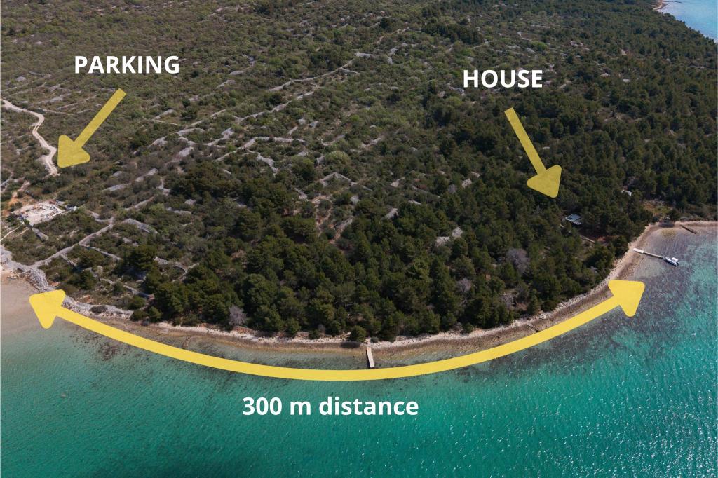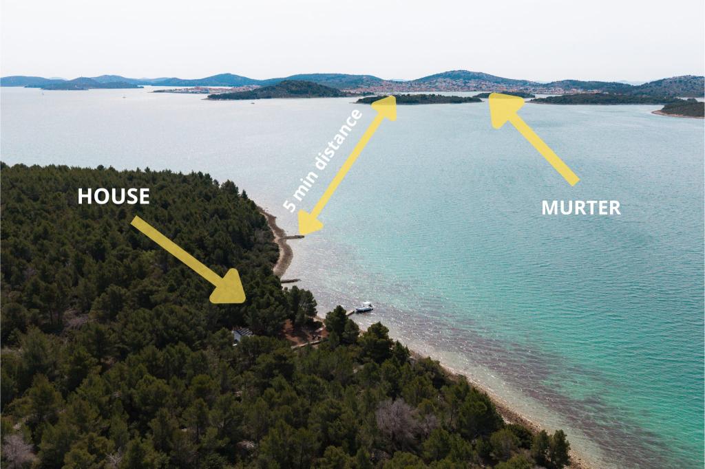 Přímořský dům „Una“ se nachází v naprosté izolaci, obklopen zelení a nedotčenou přírodou, což z něj činí ideální místo k úniku od každodenního stresu. Nachází se pouhých 5 minut jízdy motorovým člunem od ostrova Murter. Zde si můžete užít ticho, přírodní stín a moře, které je jen pár kroků odtud. Nejbližší objekt je vzdálený 70 metrů a není v provozu, což navíc zaručuje naprostý klid a soukromí. Toto je ideální místo k relaxaci a spojení s přírodou, daleko od davů a hluku. K domu se dostanete pouze lodí a doprava je zahrnuta v ceně. Příjezd autem není možný - vozidlo je nutné nechat na našem parkovišti v Murteru.