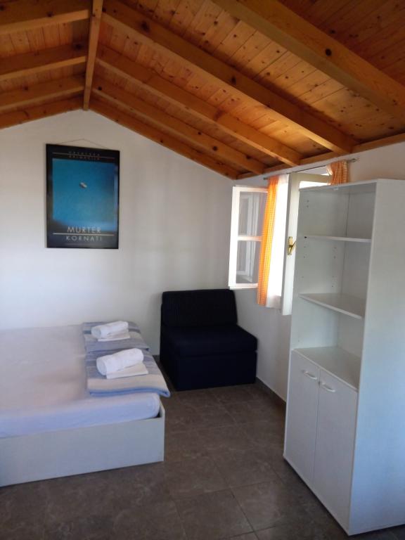 Rybářský dům s krásným výhledem na moře se nachází ve výborné lokalitě jen 30 metrů od moře. Rybářský domek má solární panely, ze kterých se získává elektřina (lze použít menší zařízení). Voda je dobrá na sprchování (z vodovodu nebo dešťová voda), ohřátá sluncem. Vody je dostatek, pokud se používá racionálně. Rybářský domek má rozlohu 25 m2. Ve studiovém apartmánu se mohou ubytovat 2 dospělí. Má obývací pokoj. Má přistýlku pro jednu osobu. Má koupelnu se sprchovým koutem. Plocha balkonu/terasy je 15 m2. Parkování je zajištěno a zahrnuto v ceně. K dispozici je venkovní gril, který lze použít. Rybářský dům je asi 1500 m od centra města a 30 m od moře nebo první pláže na Murteru. Domácí mazlíčci jsou povoleni za příplatek. Byt je ve výborné lokalitě u moře az terasy si můžete vychutnat výhled na Kornati a krásné západy slunce. Je to jen 5 minut chůze od zálivu a pláže "Čigrađa". Do centra města dojdete za 30 minut. První obchod je vzdálen 20 minut chůze. Bezplatné a hlídané parkoviště.