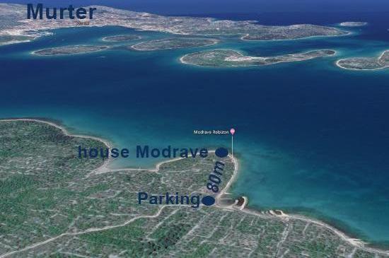 Objekt se nachází 10 minut od centra Murter vlastní vlastní kotviště pro loď. Do objektu je možné dojet lodí a autem pouze tím, že řídíte auto na macadamské silnici. Bezpečné parkování v Murteru je zdarma zajištěno. Také zajištěno pro domácí dopravu zdarma. Dům se nachází na pobřeží 10 metrů od moře. Objekt má 240V elektrickou energii ze sluneční energie. Voda je z nádrže a musí být racionálně spotřebována. Dům je vhodný pro cyklisty, protože je v blízkosti cyklostezek. Dům je v ústraní a je ideální pro odpočinek a klid.