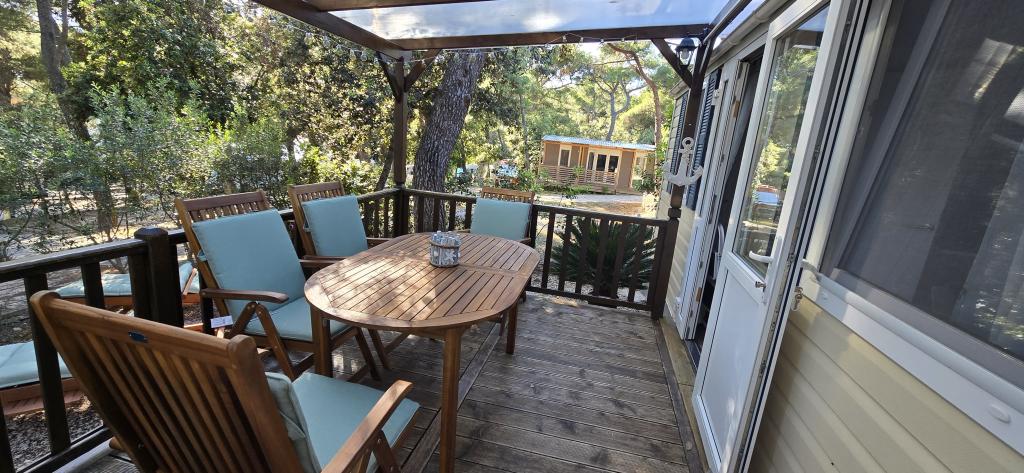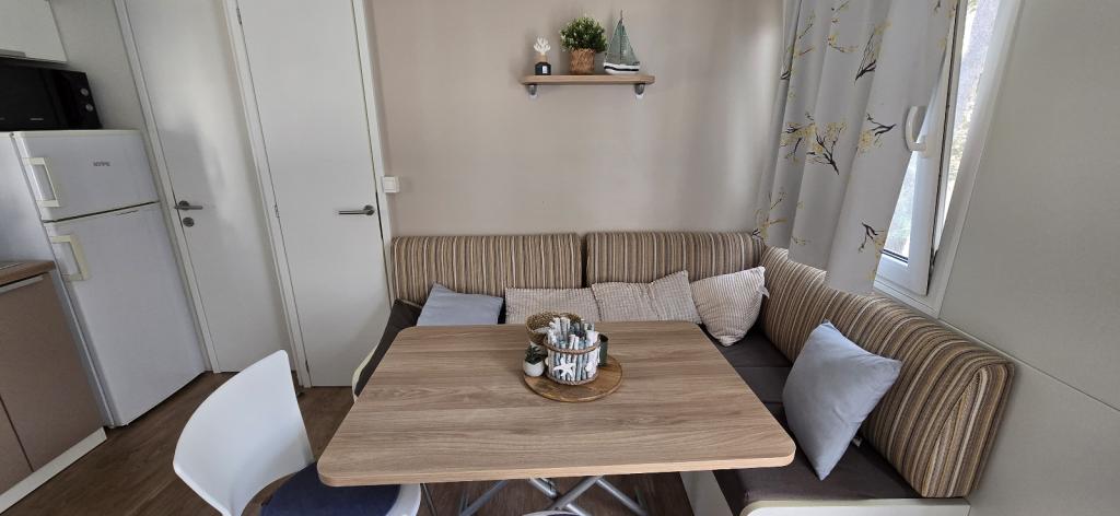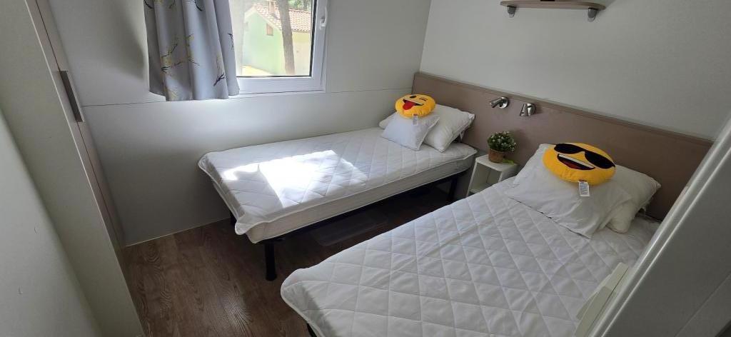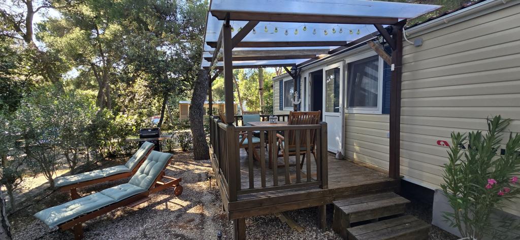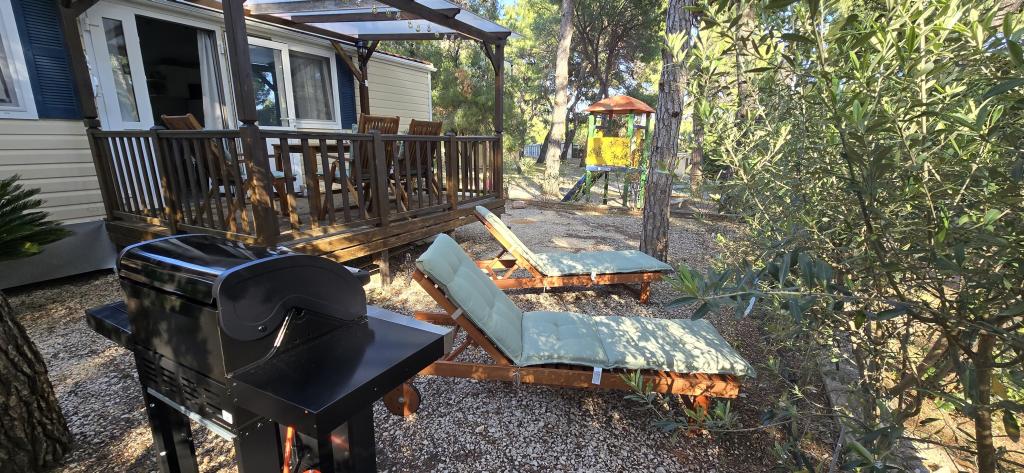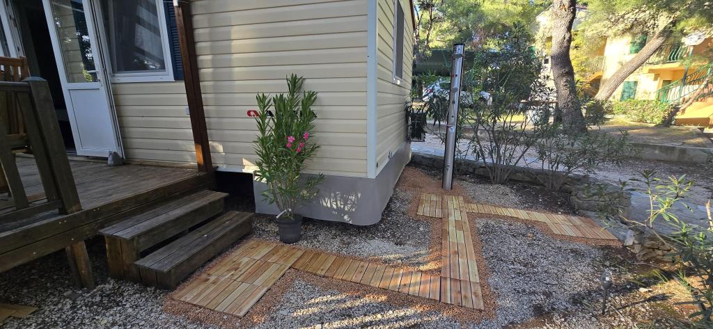 Léto je tady, rezervujte si termín na rok 2025 Mobilní dům Vomer Jednotka u pláže Plně vybavený mobilní dům v kempu Kozarice Pakoštane Pláž 50 m Příjemný stín i za nejsilnějšího slunce. 4+1 osoby 32 m2 + terasa 10 m2 Ložnice 1 1 manželská postel Ložnice 2 2 samostatná lůžka Obývací pokoj (rozkládací pohovka) 2 koupelny sup venkovní sprcha, TV Bezplatné parkování (přímo vedle domu) Bezplatné WiFi (vysokorychlostní internet A1) Klimatizace Gril Ložní prádlo, ručníky Kuchyň je vybavena indukční varnou deskou, lednicí s mrazákem, mikrovlnnou troubou, toustovačem, varnou konvicí, nádobím... Na terase na vás čeká místo k relaxaci v pohodlných lehátkách. V kempu je park a poblíž je pračka a sušička. Restaurace a kavárna v kempu pár minut chůze. Blízko města (3 minuty chůze), promenády, restaurací, kaváren, lékárny, obchodů,