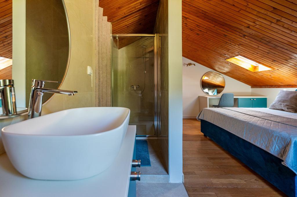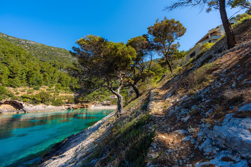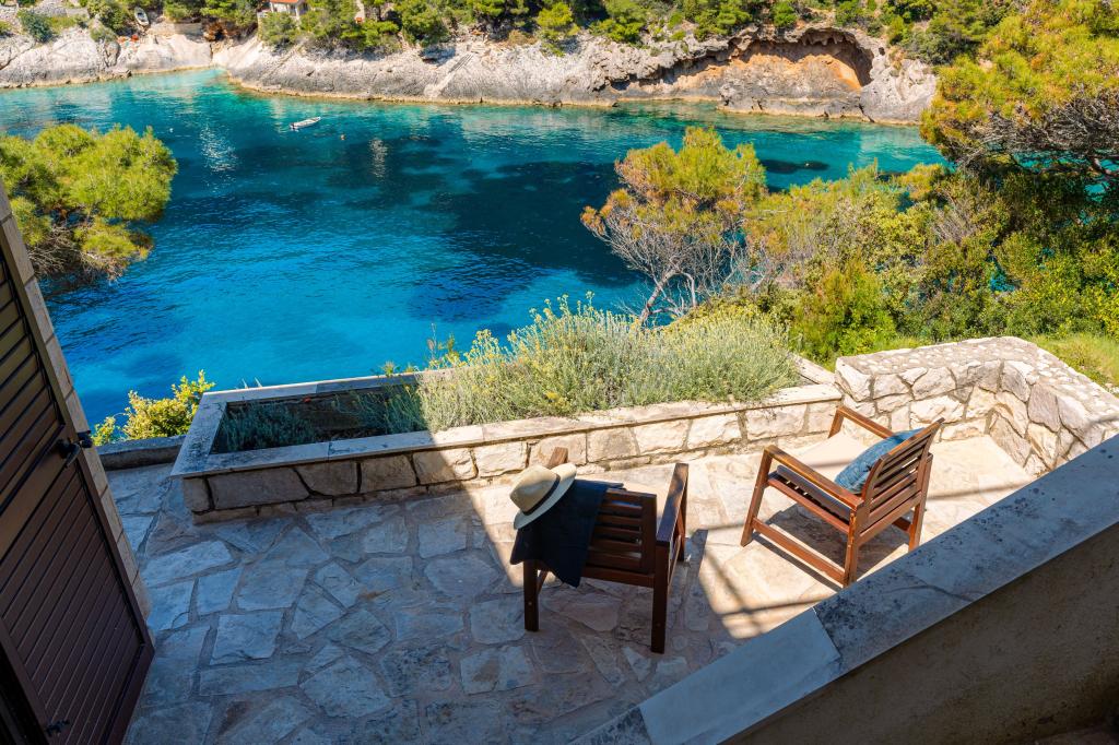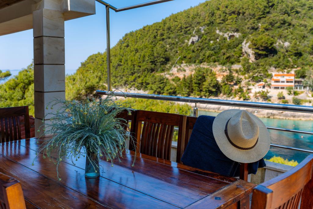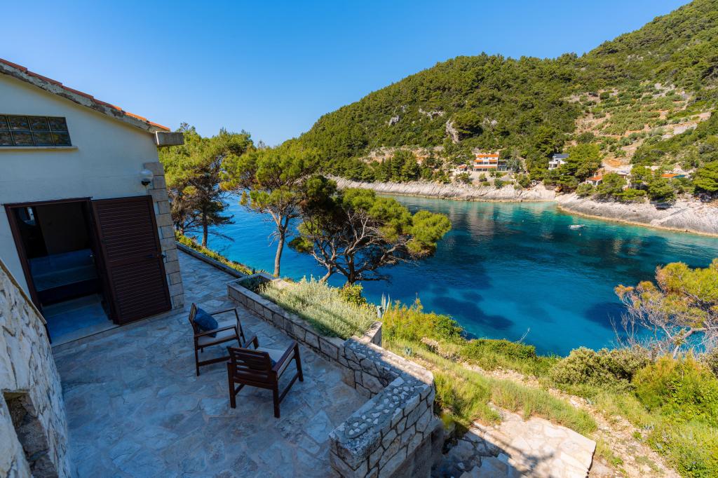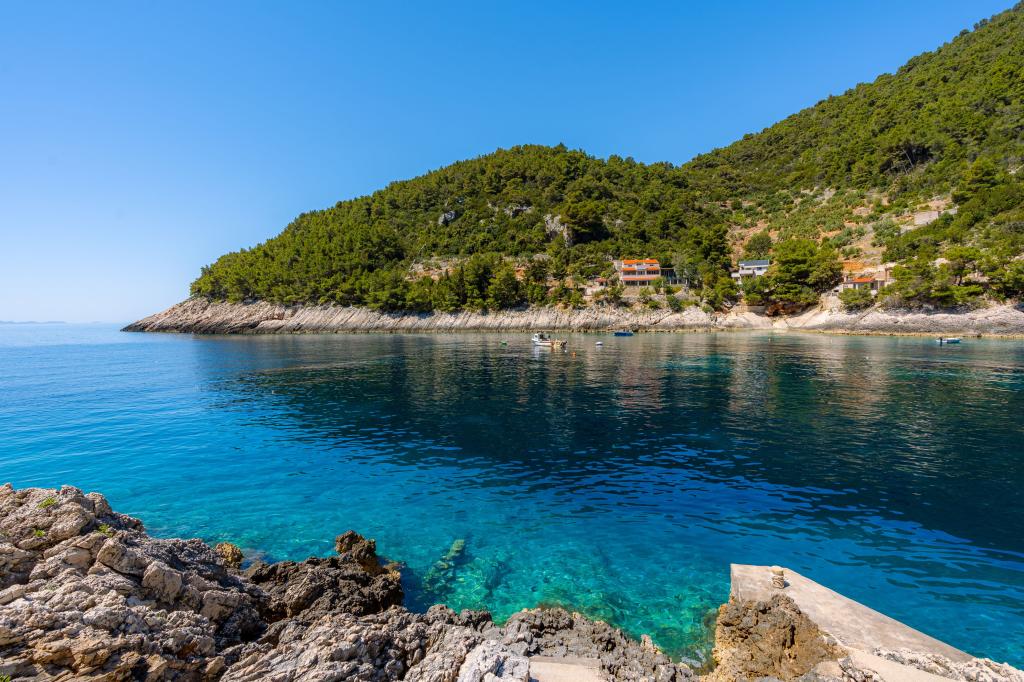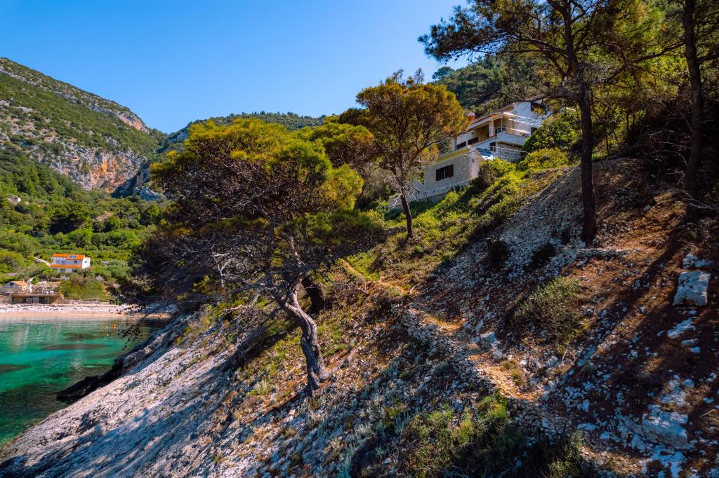 Ze zátoky, která směřuje k ostrovu Lastovo a dále: směrem k Itálii, a která je téměř odříznutá od civilizace, stojí Robinsonův dům. Dům má 4 ložnice (kapacita 8 osob), obývací pokoj, několik teras, 3 koupelny, dvě relativně dobře vybavené kuchyně, venkovní gril. Okolí je strmé, skalnaté a zelené (silná vegetace). V zátoce je krásná oblázková pláž a restaurace. Na druhé straně zálivu je několik dalších domů. Takže nejste úplně sami... Přístup k domu: Hlavní silnice končí, když přijedete na malou úzkou silničku (5 km k domu). po 5 km můžete nechat auto na parkovišti. Odtud vede k domu úzká cesta bujnou vegetací (cca 30m). Pak přichází jedinečný zážitek: krásný výhled a velmi dobře organizovaný a vybavený dům (samozřejmě v možnostech, které Robinsonská oblast umožňuje). Chceme vám představit toto ubytování jako něco jedinečného.