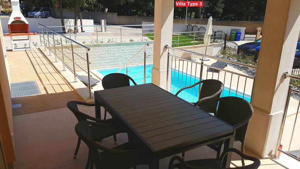 K dispozici jsou 3 typy vil, ze kterých si můžete vybrat. Všechny vily mají stejný interiér, stačí si vybrat typ vily 1, typ 2 nebo typ 3! Vila může ubytovat až 8 plus 2 hosty. Ve vile jsou 4 ložnice, každá s vlastní koupelnou. Odpočiňte si v útulném obývacím pokoji a připravte si chutné pokrmy v plně vybavené kuchyni s jídelnou. Můžete relaxovat u svého soukromého bazénu, ležet na lehátkách a užívat si krásy slunce. Speciality na grilu na dřevěné uhlí můžete připravit i pro své přátele a rodinu. Pokud chcete jít na pláž, stačí si vzít ručník a za pár minut chůze jste na pláži, ale v docházkové vzdálenosti jsou také úžasné restaurace. Vila je klimatizovaná, má WiFi, soukromé parkoviště pro 3 auta a nabízí vše pro příjemnou dovolenou.