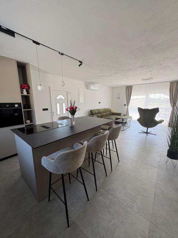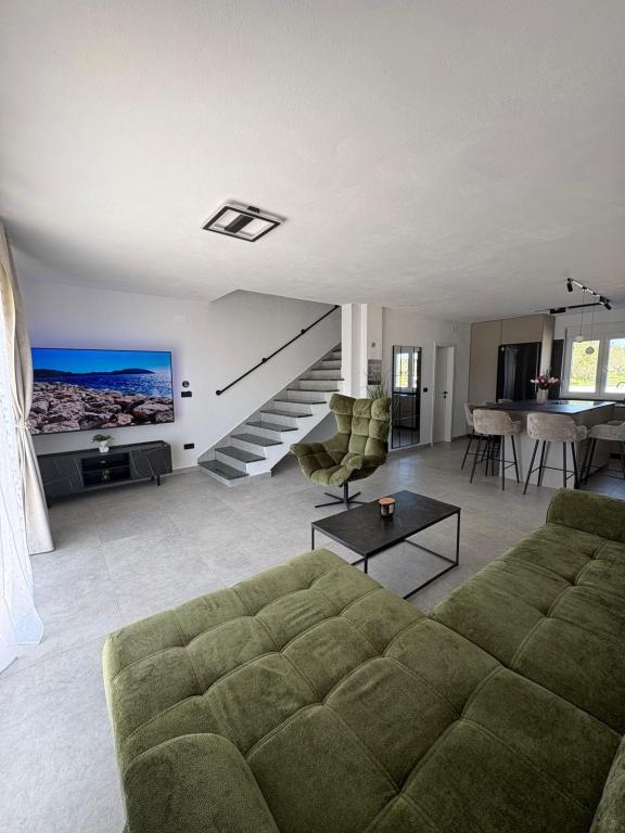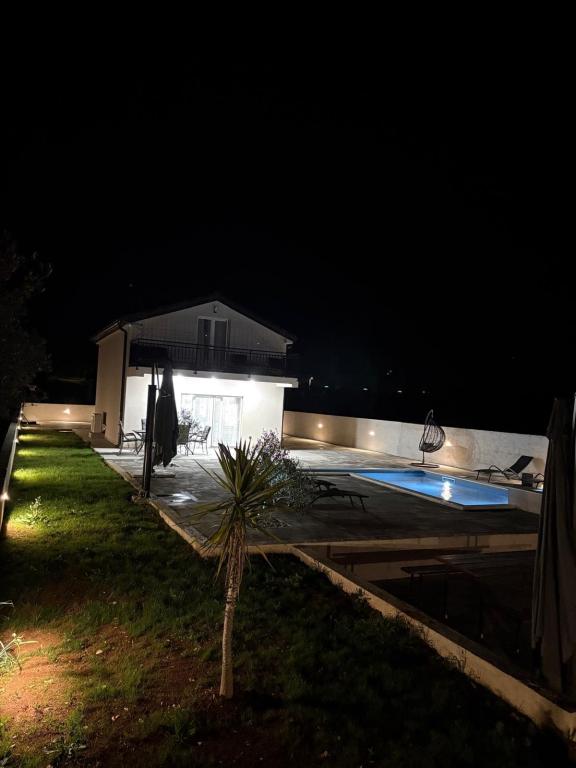 Rekreační dům se nachází v srdci olivového háje, pouhé 2 km od moře a je ideálním místem pro kompletní dovolenou v klidu a pohodě. Je obklopen přírodou a poskytuje pocit soukromí daleko od městského ruchu. Zvláštní atmosféru vytváří vyhřívaný bazén, ideální pro užívání si jarních a letních dnů. Prostorná zahrada je ideálním místem pro rodinné aktivity. V prvním patře domu se nacházejí 3 ložnice s manželskými postelemi a malou koupelnou. Třetí ložnice má také balkon s krásným výhledem do zeleně a v přízemí se nachází prostorná kuchyň a obývací pokoj. Rekreační dům Frano je pro vás ideální volbou, protože kombinuje pohodlí přírody a blízkost moře a nabízí vám vše, co potřebujete pro nezapomenutelný pobyt. Dům je vybaven všemi domácími spotřebiči a venkovním krbem.