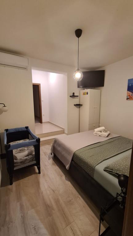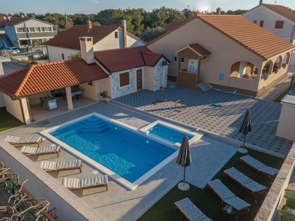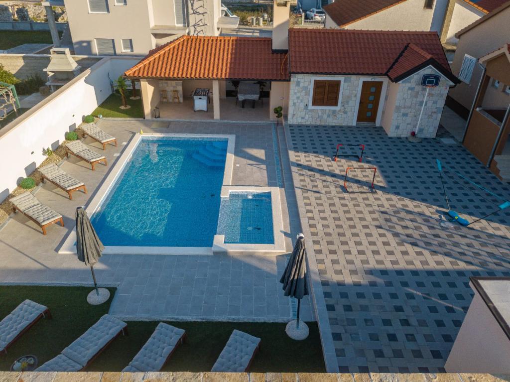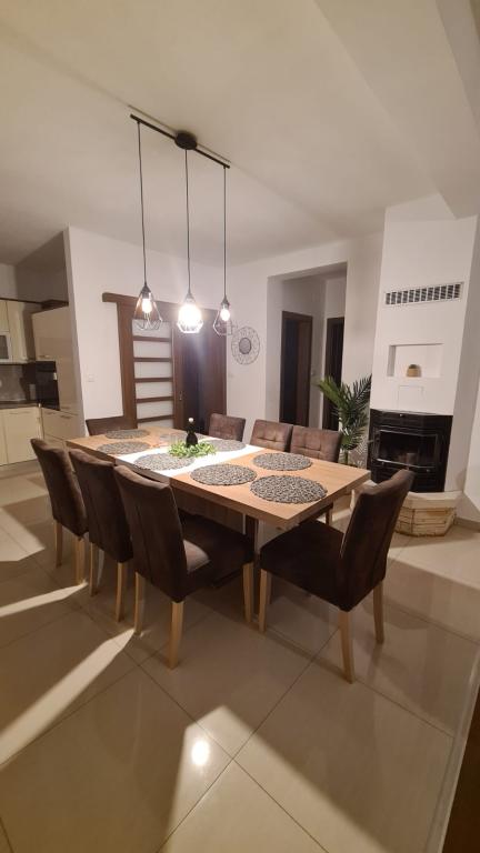 Moderní vila s bazénem, 3 km od centra města. V areálu je plavecký bazén 8x4 m a dětský bazén 3x1,5 metru. Bohatý obsah pro děti, stolní fotbal, kulečník, stolní tenis, skluzavka, trampolína...