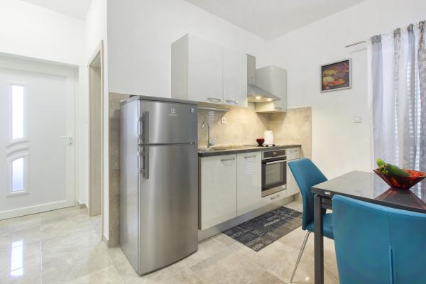 NOVÁ VILA SE ZAHRADOU A NÁDVOŘÍM Krásná, moderní vila v přírodním středomořském zeleném prostředí. Vila má 60 m2 obytné plochy, zahradu a dvůr o celkové ploše 400 m2, hlídané parkování. Vila má: - 2 ložnice - 1 koupelnu - kuchyň s jídelnou - balkon/terasu Plně vybavená/kuchyň, pokoj a koupelna Wi-Fi, klimatizace, parkoviště, registrace hostů - zahrnuto v ceně! ZAHRADA A DVŮR: – Dětské hřiště/ - dvůr s automatickým otevíráním/zavíráním dveří. - Užijte si plody bio zeleniny z naší zahrádky.