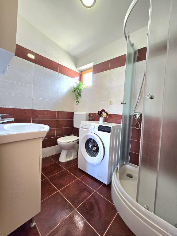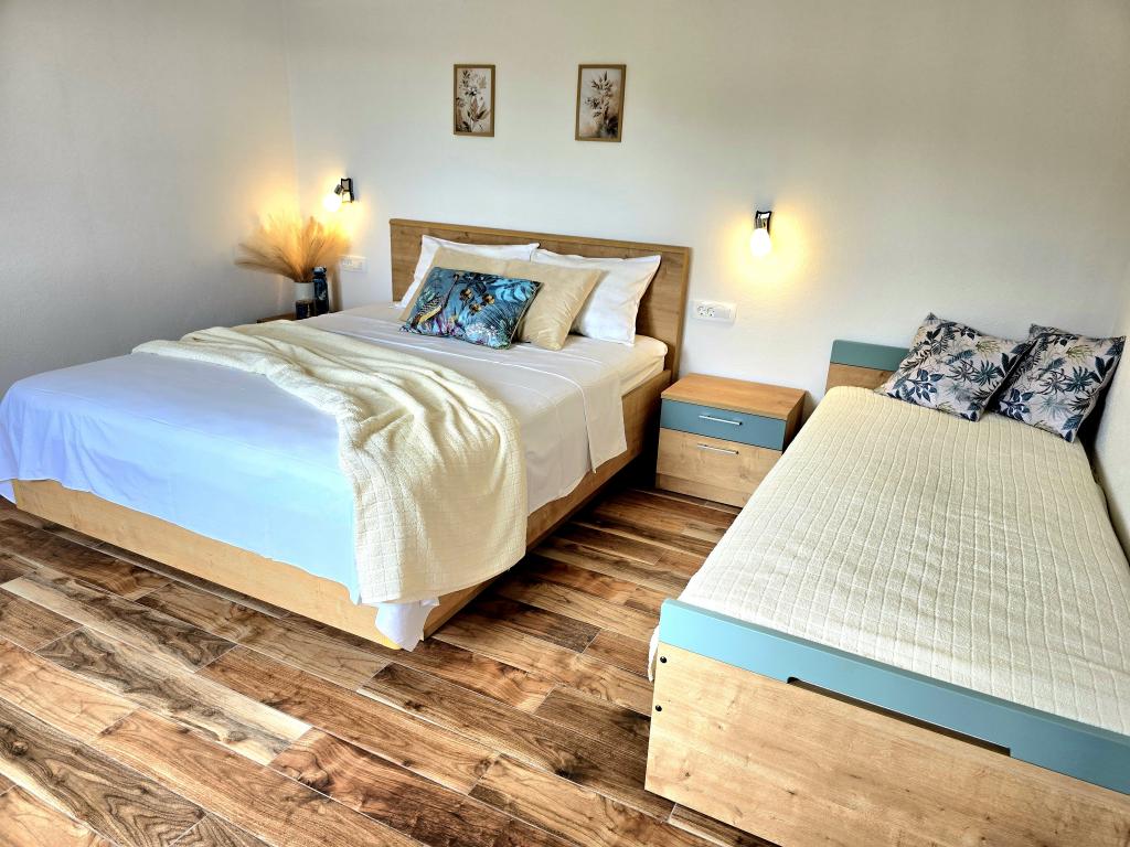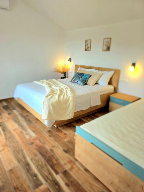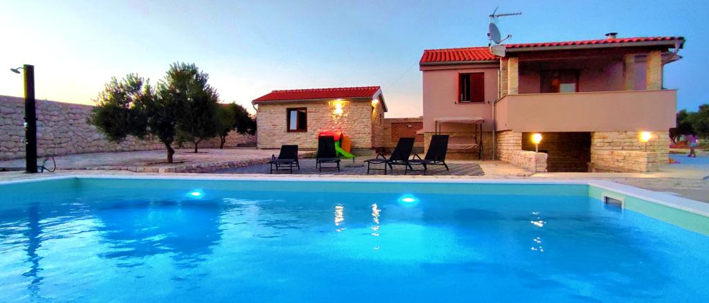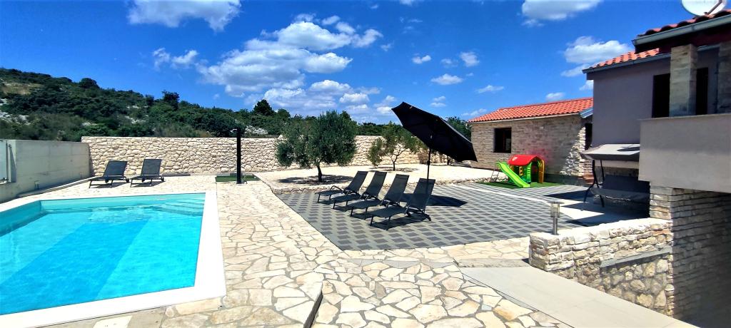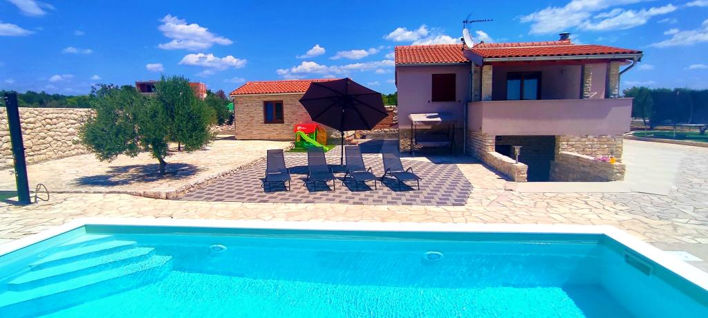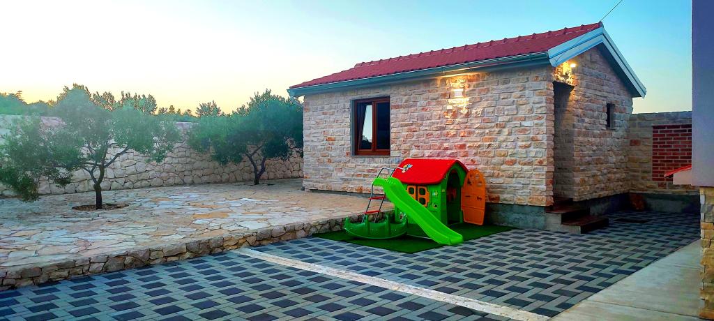 Náš rekreační dům je ideálním únikem od městského shonu a nahromaděného stresu a je přizpůsoben i těm nejmenším. Z terasy si můžete vychutnat výhled na moře, který evokuje pocit dalmatské fjaky. Dům s vlastním parkováním má 3 ložnice a 2 koupelny, což poskytuje pohodlí pro 7 osob. Prostor je klimatizovaný, kuchyň je plně vybavená a nabízíme také dětskou postýlku a kočárek - zdarma! Pro větší zábavu je k dispozici velký bazén, venkovní gril, Wi-Fi, Netflix, trampolína, rotoped, místnost se šipkami a stolním tenisem a dětský koutek. Velmi blízko ubytování se nachází Vranské jezero, které si můžete prohlédnout na našich kolech. Těšíme se na váš příjezd!