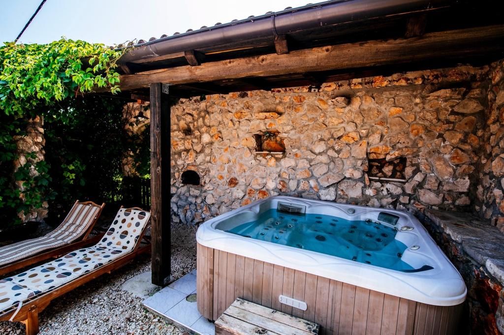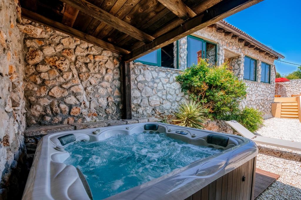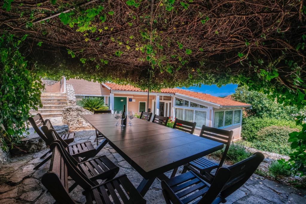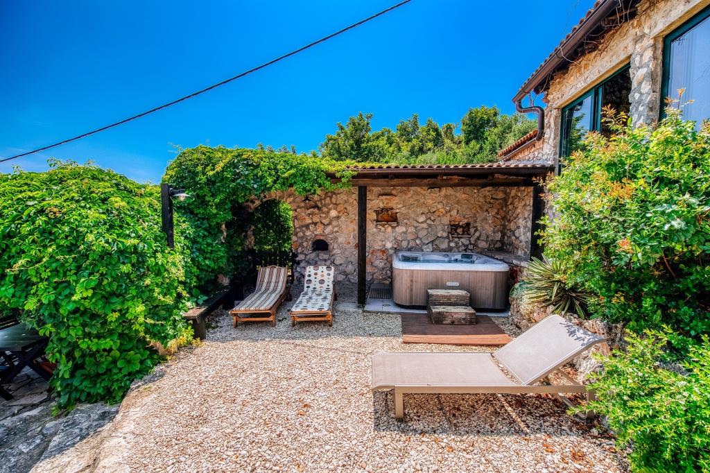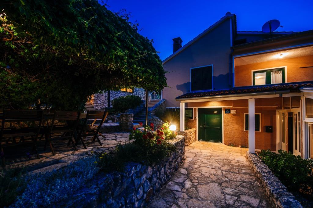 Rodinný dům na 2 podlažích. 1. 5 km od centra města Mali Iž, vyvýšená poloha, 30 m od moře, 30 m od pláže. : Pozemek 600 m2, zahrada na různých úrovních - rostlinami a květinami, dvůr, bazén (3 x 8 m, hloubka 130 cm, 17. 05. -27 09..) S vnitřními schůdky. Nepravidelné bazén. Zahradní sezení, terasa (15 m2). V domě: přístup na internet, pračka. Příjezd končí 40 m od domu. Parkování u 40 m. Obchod 150 m, restaurace 100 m, kamenitá pláž, skalnatá pláž 40 m. Vířivku a saunu. Na pozemku se nachází hned vedle domu, a ještě se krásně zdobené hostinec s grilem, trouba, velký jídelní stůl, bar, mrazák, lednicí pro nápoje, kulečníkem, šipkami a 2 WC.
