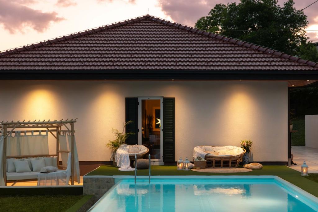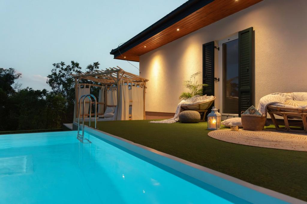 Villa Plešivica view je kombinací tradičního, místního a moderního, industriálního stylu, který je obklopen nedotčenou přírodou. Zvláštní pozornost je věnována detailům, které dodávají vile eleganci, vzdušnost a teplo. Přestože se jedná o novostavbu, byla v roce 2022 kompletně zrekonstruována. Skládá se z jedinečné vstupní haly, prostorného obývacího pokoje, dvou ložnic, samostatné kuchyně, dvou nádherných koupelen a pozdní terasy. Specialitou této vily jsou skleněné panely, které nabízejí otevřený výhled na oblohu a pohádkové svahy vinic a sadů. Areál samotné vily tvoří přetékající bazén, čtyři různé terasy a okouzlující altán. To vše rámuje přes 3000 m2 travnatých ploch ohraničených autochtonními ovocnými stromy a bohatou vegetací. Vila nabízí také lázeňskou a wellness oázu. Samotná výzdoba vily je eklektická a představuje kombinaci současného designového nábytku v kombinaci s restaurovanými art deco a art nouveau kousky, které jsou součástí rodinného dědictví.