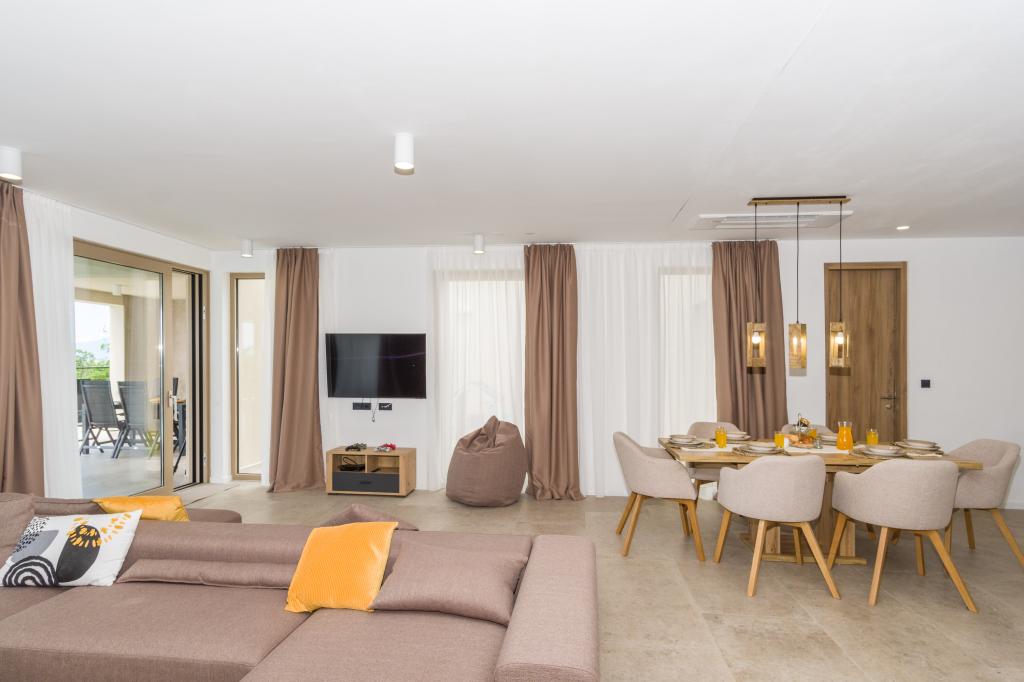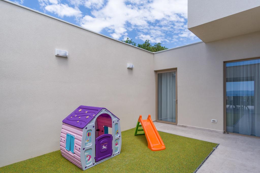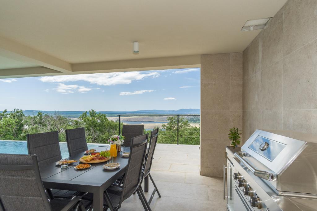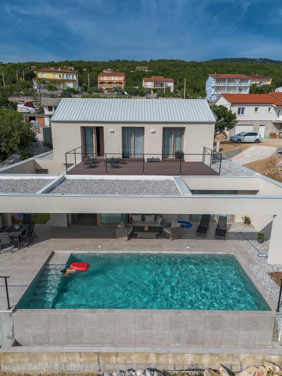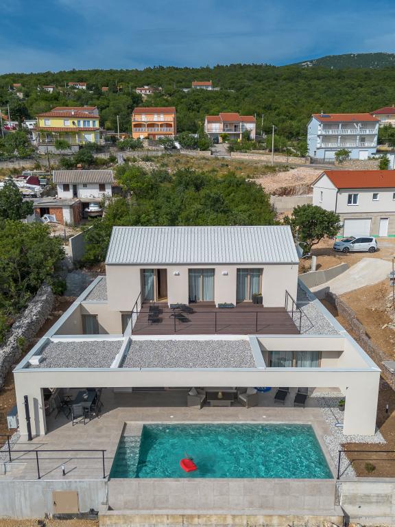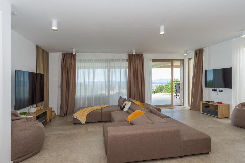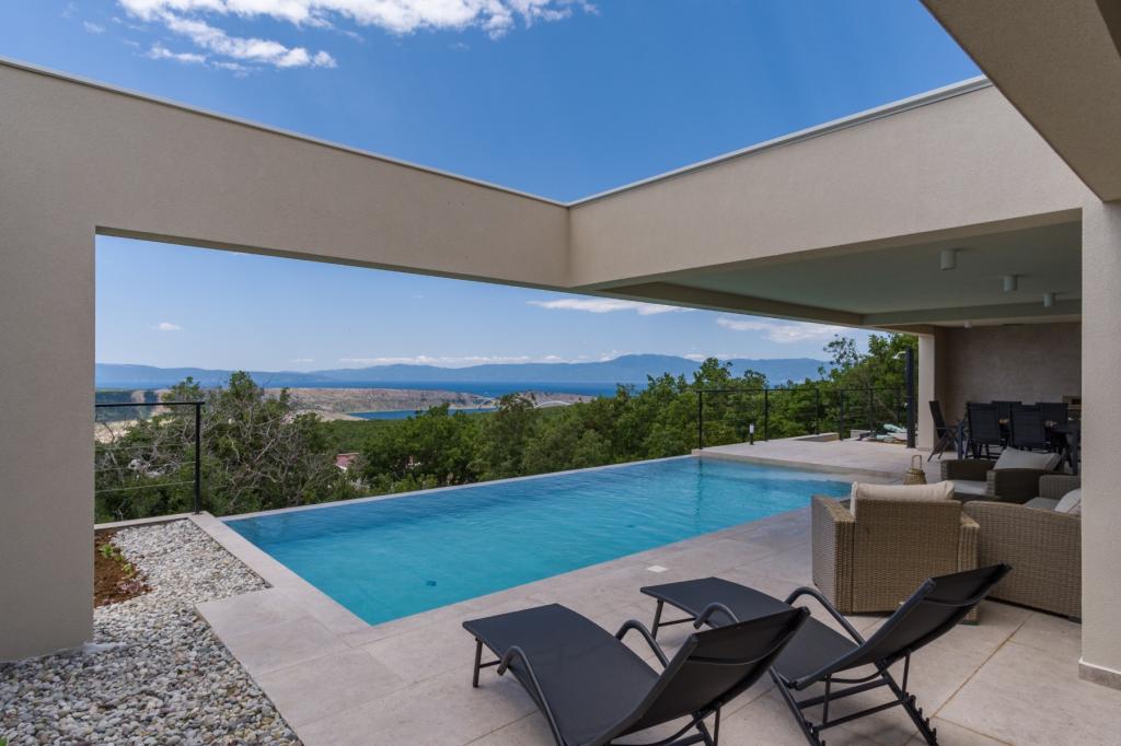 Nový. Plně vybavená nová vila s bazénem o rozměrech 9x4 m se nachází v obci Šmrika, nedaleko turistického letoviska Crikvenica. Vila se nachází na klidném místě a je skrytá před zraky. Z každého rohu domu je výhled na moře, ostrov Krk, ostrov Cres, Istrie az terasy v prvním patře na Rijeku a Opatiju. Vila má 3 velké ložnice a koupelnu v každém pokoji a velký obývací pokoj s kuchyní a jídelnou. Vedle bazénu je také venkovní kuchyně s plynovým grilem. Aby se děti nenudily, je k dispozici herna 4 a pro nejmenší dětské hřiště s domečkem a skluzavkou. Dospělí mohou relaxovat v posilovně. Vedle kuchyně je malá zahrádka s kořením, které lze použít při vaření - bazalka, rozmarýn, cherry rajčata... Vzdálenost od písečné pláže v Jadranovu je 4 km. Ve vzdálenosti pouhého 1 km se nachází motokárová dráha Bura a oslí farma, mimořádně atraktivní pro děti.