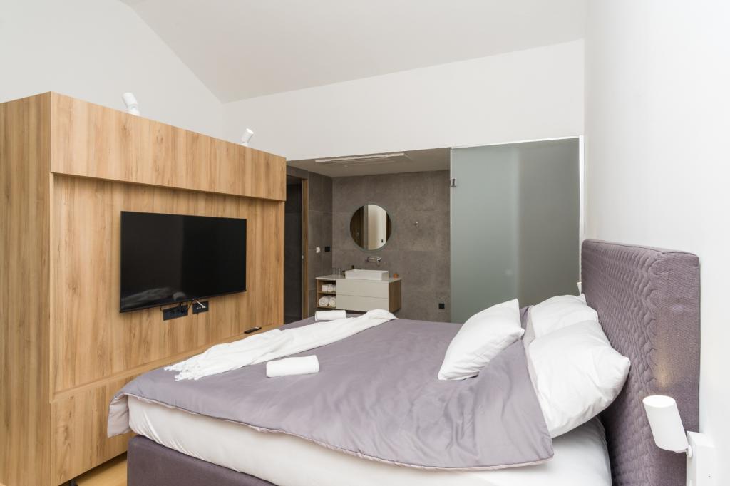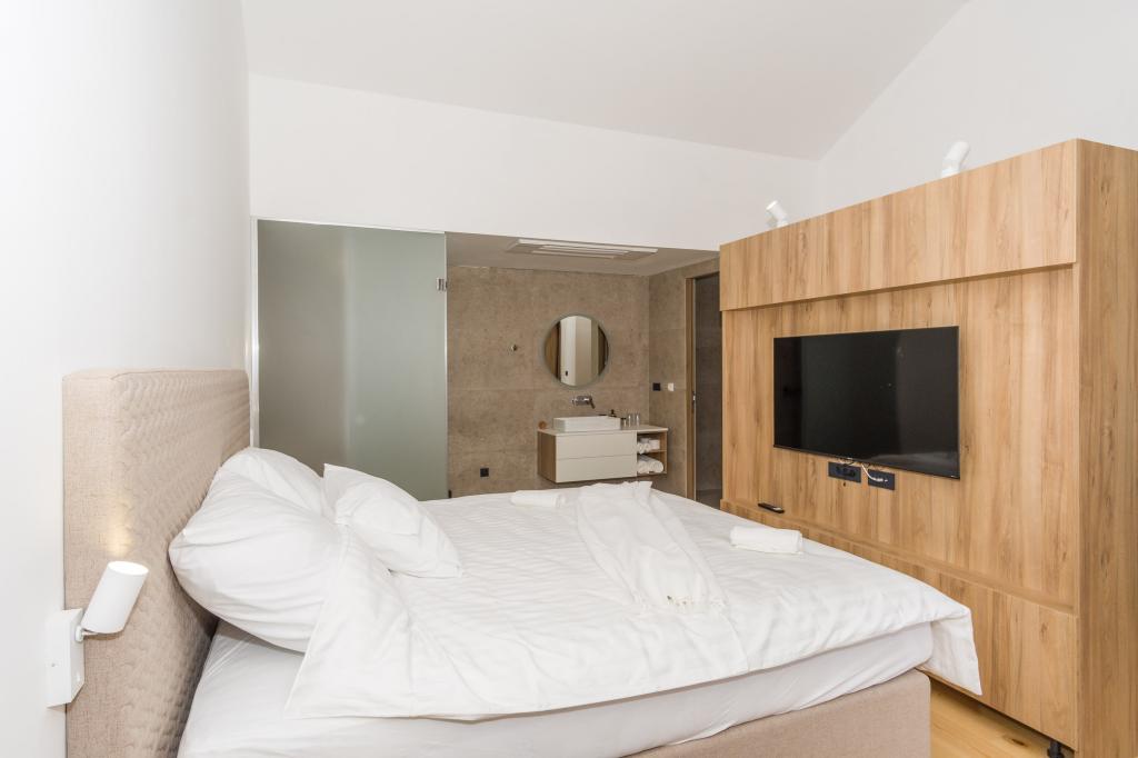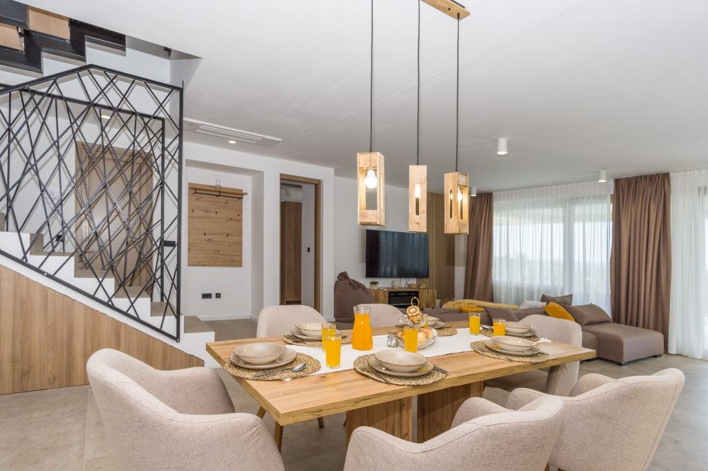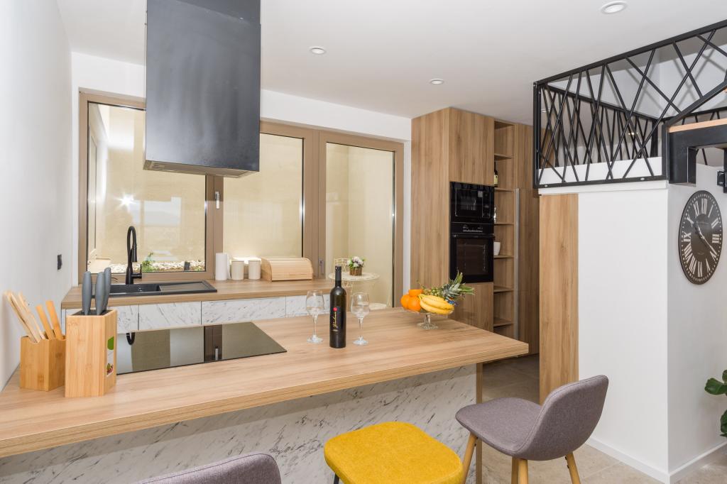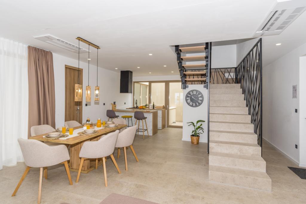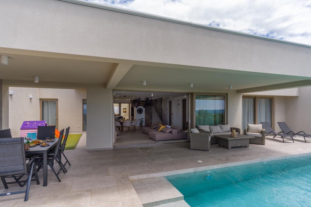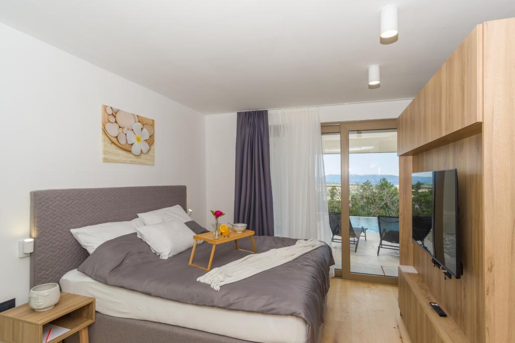 Nový. Plně vybavená nová vila s bazénem o rozměrech 9x4 m se nachází v obci Šmrika, nedaleko turistického letoviska Crikvenica. Vila se nachází na klidném místě a je skrytá před zraky. Z každého rohu domu je výhled na moře, ostrov Krk, ostrov Cres, Istrie az terasy v prvním patře na Rijeku a Opatiju. Vila má 3 velké ložnice a koupelnu v každém pokoji a velký obývací pokoj s kuchyní a jídelnou. Vedle bazénu je také venkovní kuchyně s plynovým grilem. Aby se děti nenudily, je k dispozici herna 4 a pro nejmenší dětské hřiště s domečkem a skluzavkou. Dospělí mohou relaxovat v posilovně. Vedle kuchyně je malá zahrádka s kořením, které lze použít při vaření - bazalka, rozmarýn, cherry rajčata... Vzdálenost od písečné pláže v Jadranovu je 4 km. Ve vzdálenosti pouhého 1 km se nachází motokárová dráha Bura a oslí farma, mimořádně atraktivní pro děti.
