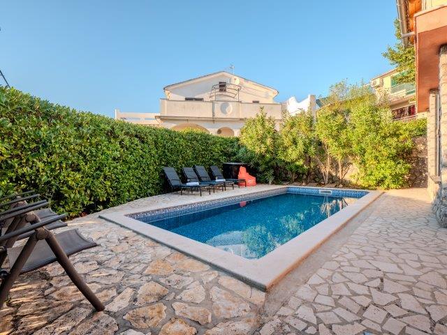 Plně zařízená vila s bazénem nedaleko centra Malinska - ostrov Krk. centrum a veškerá občanská vybavenost je pár set metrů daleko. restaurace jsou v blízkosti. kryté parkování ve dvoře. klimatizace a kamna na pelety. Ideální na dovolenou. Klid a příjemný pobyt.