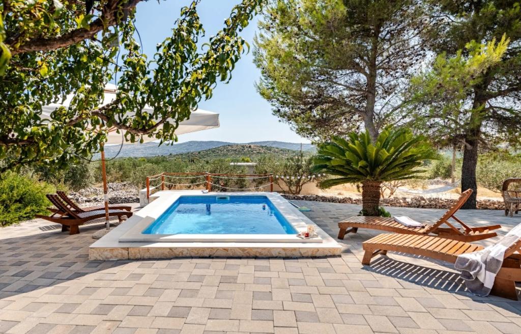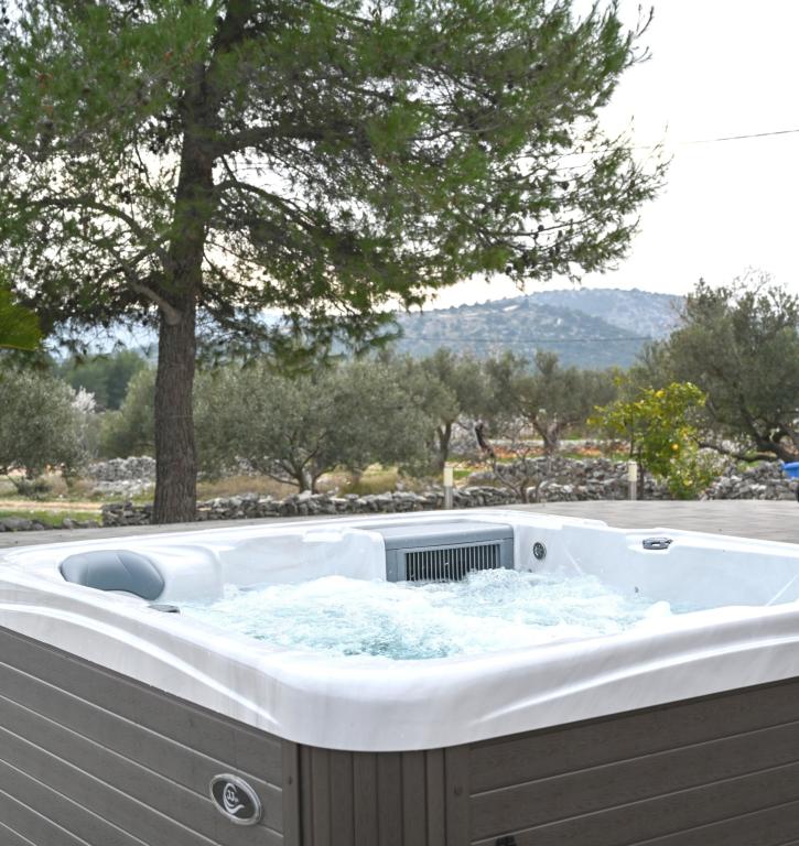 **Soukromý dům s VYHŘÍVANÝM BAZÉNEM A VÍŘIVKOU – POUZE 3 KM OD MOŘE (Marina, Trogir)** **Hledáte klid, soukromí a skutečnou dovolenou bez davů? **Náš rekreační dům v obci Najevi nabízí právě to – obklopen olivovníky a přírodou, a přesto jen pár minut jízdy od moře, restaurací a kaváren. **PROČ SI VYBRAT TENTO DŮM:** **SOUKROMÝ BAZÉN (vytápění a chlazení) ** VÍŘIVKA / VÍŘIVKA (36–38 °C) ** POUZE 3 KM OD MOŘE A PŘÍSTAVU ** NAPLNÉ SOUKROMÍ – žádní bezprostřední sousedé ** KLIDNÁ LOKALITA ideální pro relaxaci ** IDEÁLNÍ PRO 2–6 OSOB **Ubytování:** Dům má tři pohodlné ložnice, plně vybavenou kuchyň a útulný obývací pokoj pro relaxaci. Dvě ložnice se nacházejí v přízemí, zatímco třetí se nachází v podkroví a je přístupná po skládacím půdním žebříku. Tato místnost nabízí speciální a intimní prostor, ideální pro starší děti nebo dospělé (nedoporučuje se pro malé děti nebo starší osoby z důvodu omezené dostupnosti).