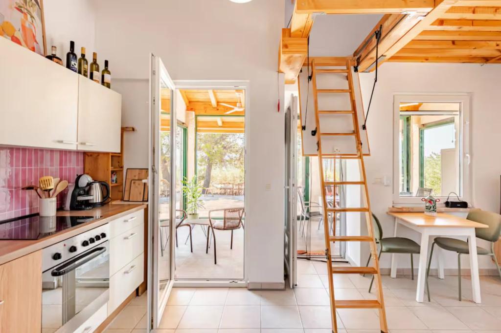 Jedna ložnice v přízemí má vlastní koupelnu a samostatný vchod, což poskytuje větší soukromí. Venkovní prostor: Užijte si soukromý bazén, který lze vyhřívat nebo chlazovat – ideální pro použití od jara do podzimu. Po dni stráveném na pláži si můžete odpočinout ve vířivce pod hvězdami. K dispozici je krytá venkovní jídelna, kde si můžete vychutnat jídlo pod širým nebem, a také několik slunných a stinných zákoutí obklopených olivovníky – ideální pro sklenku vína a naprostý klid. Poloha: Dům se nachází v klidné vesnici Najevi, pouhé 3 km od přístavu a moře. V blízkosti se nacházejí pláže, restaurace a obchody a zároveň máte naprosté soukromí a ticho. ***Cena: 170 € – 310 € za noc (v závislosti na období)*** S dotazy a rezervacemi nás neváhejte kontaktovat pr