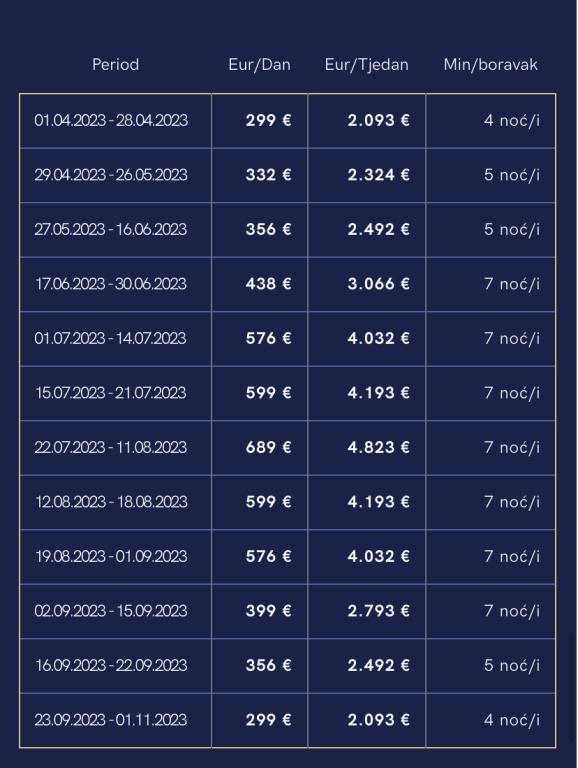 Přečtěte si vícePři rezervaci se platí 30% a 7 dní před příjezdem zbytek doplácí se peníze přímo na účet majitele. Při vstupu do domu Vás uvítá majitel domu, který Vás seznámí s domem a je nutné zanechat zálohu 300 eur, která Vám bude vrácena při odchodu z domu, pokud nic nebude poškozené. Hosté mohou vstoupit do vily od 16:00 a odcházet do 10:00.