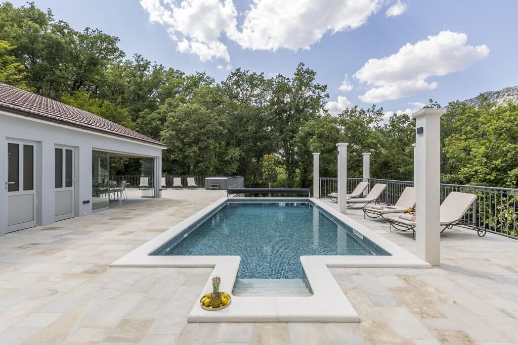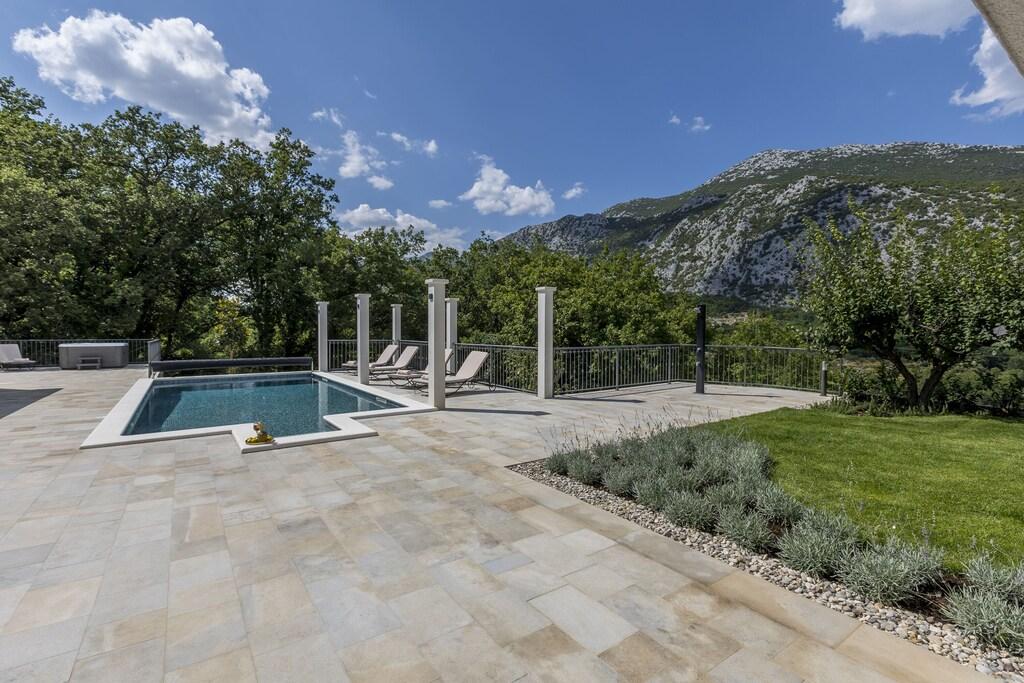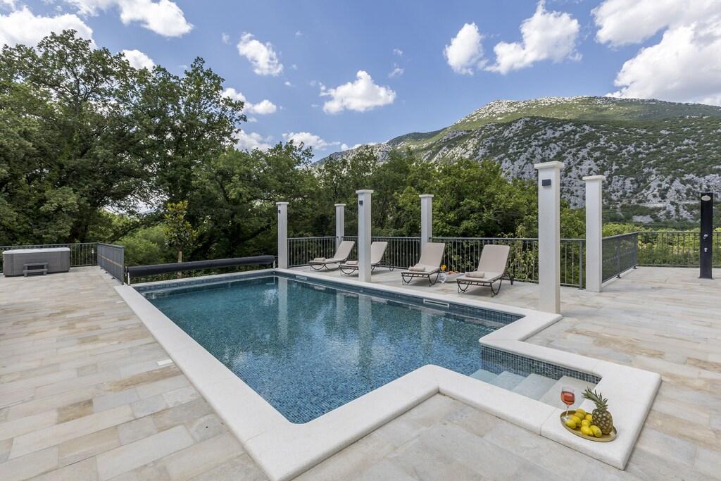 Kompletní a nově zrekonstruovaná vila s bazénem, saunou, letní kuchyní a domem 4+kk. Každý pokoj má vlastní koupelnu, obývací pokoj, jídelnu a kuchyň. Dům se nachází v malé vesničce Zvečanje, 10 minut od dálnice Blato na Cetini. Omiš je daleko, 15 minut autem, Split 35 minut, Makarska 25 minut.