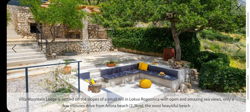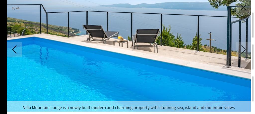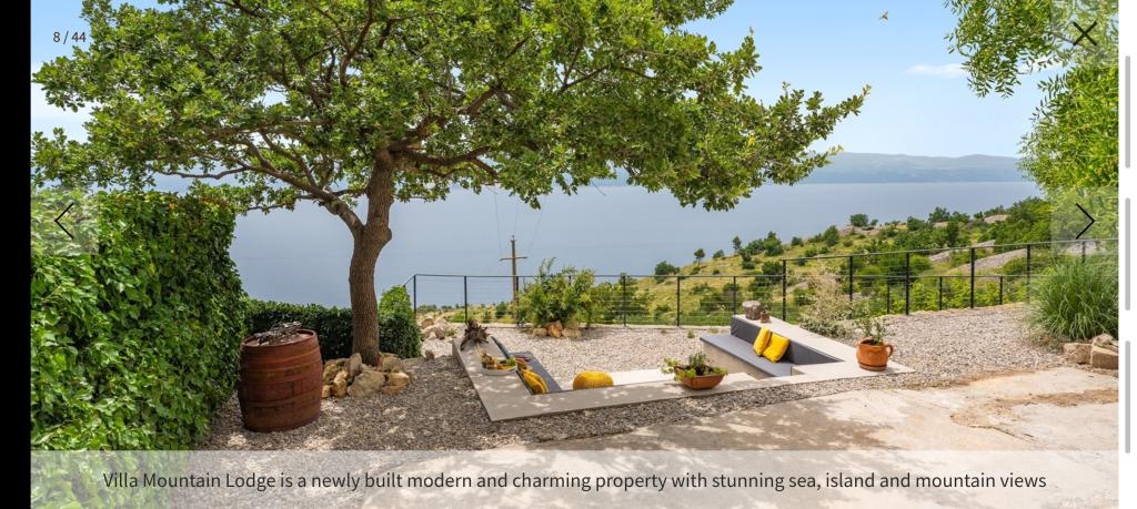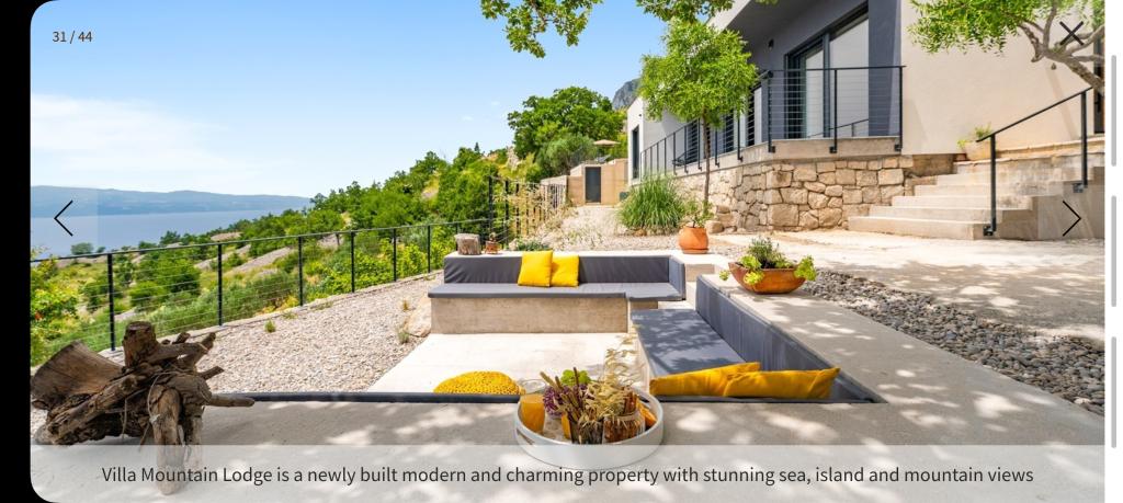 Vila Mountain Lodge je nově zrekonstruovaná moderní vila se 4 ložnicemi a panoramatickým výhledem na moře a ostrovy i na hory. Na zahradě o rozloze 900 m2 si můžete užívat středomořské rostliny, vyhřívaný bazén o rozměrech 7,5 x 3 m, který se nachází v dětském hřišti. Součástí toho všeho je posezení, kde si můžete vychutnat svou první ranní kávu ve stínu stromu. Gril se nachází v blízkosti kuchyně a také kamenný stůl, kde si můžete užít společenské setkání a klid. Vila se nachází pouhých 8 km od okouzlujícího města Omiš, 40 minut od Makarské a Splitu, 2,3 km od krásné pláže Artina, 950 m od restaurace a 10 minut od obchodu. Pro tuto lokalitu doporučujeme auto.