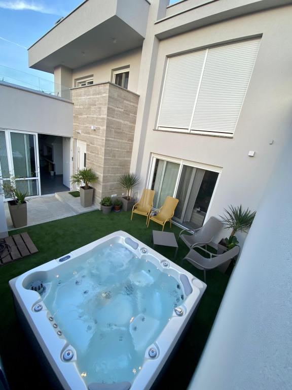 Elegantní vila se 3 ložnicemi, soukromou vířivkou, prostornou terasou s kouzelným výhledem na moře a krytým koutem pro grilování a posezení. Moderně vybavená kuchyň, pohodlný obývací pokoj, rychlé Wi-Fi a zabezpečené parkování. Ideální místo pro bezstarostnou a luxusní dovolenou v klidném prostředí, blízko pláže a místních služeb.