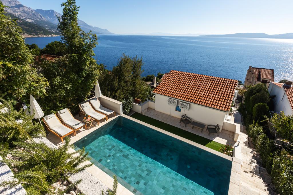 Idylická Villa Leview, která se nachází v klidné části Pisaku, vás potěší svým prostorným zeleným dvorem a zahradními oázami a krásným otevřeným výhledem na moře. Jak už název napovídá, Villa Leview má otevřený výhled na moře z každé části domu, ať už jste v kuchyni, obývacím pokoji nebo ložnici. Vyhřívaný bazén a vířivka vám zpříjemní pobyt i mimo letní sezónu. Dům má pět ložnic a poskytuje pohodlné ubytování pro 10 osob. Pokoje jsou vybaveny postelemi s pružinovým boxem, z nichž tři pokoje mají dvoulůžkové postele o šířce 180 cm a dva pokoje mají dvě samostatné postele o šířce 90 cm. K dispozici je také rozkládací dětská postýlka. Vedle bazénu se nachází prostorný obývací pokoj, kde si můžete vychutnat výhled na moře. Kuchyně a jídelna pro 10 osob jsou propojeny s krásnou jídelní terasou s nezapomenutelným výhledem na moře a ostrovy a také na pohoří Biokovo v pozadí. Dům má dvě garáže pro 4 auta.