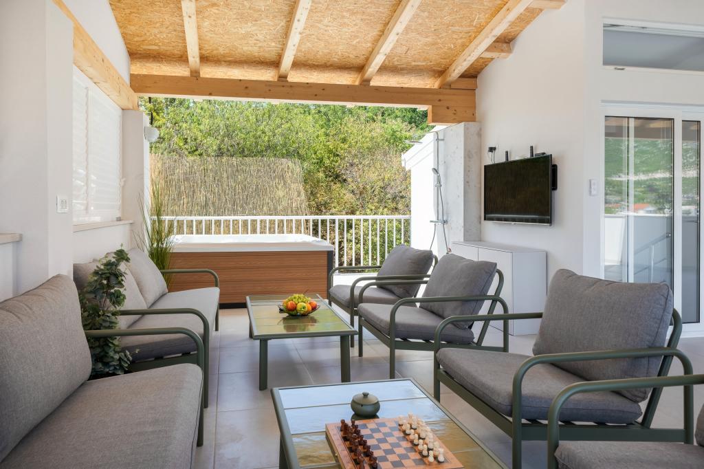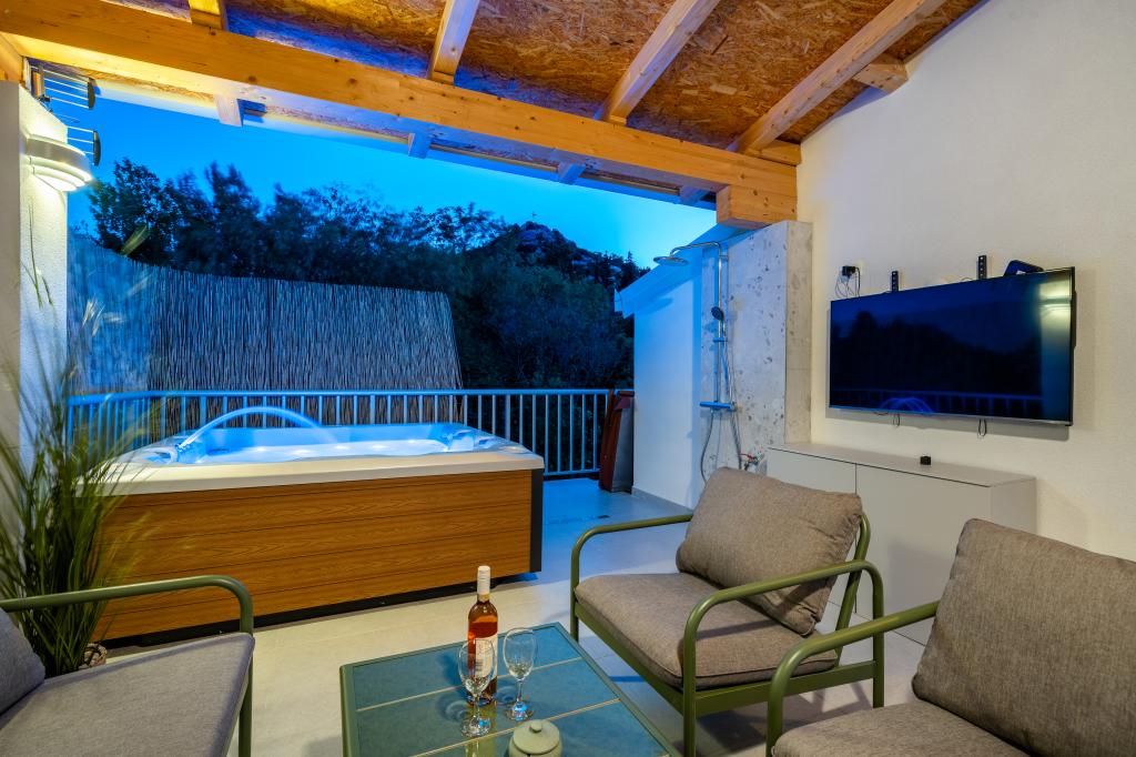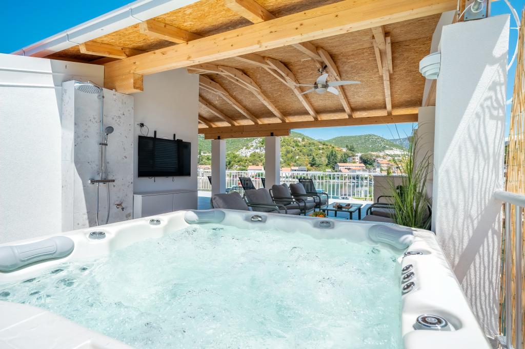 Plně a moderně vybavená vila, kde budete bydlet pouze vy, s vyhřívanou vířivkou, 3 m od moře a 30 m od pláže. Vila má terasu s venkovním jídelním koutem a soukromým krbem, 4 pokoje o rozloze 15 m2, všechny klimatizované s krásným výhledem a přístupem na balkon. Na střeše se nachází terasa o rozloze 110 m2 s venkovní sprchou, vyhřívanou vířivkou a posezením a společenskou místností. Z terasy a balkonu je krásný výhled na záliv a město. Vila má bezplatné Wi-Fi a bezplatné soukromé parkoviště. Kuchyň je vybavena všemi domácími spotřebiči. Vila se nachází 32 km od vodopádu Kravica. 42 km od vily se nachází Vrch zjevení v Međugorje, 10 km od vily se nacházejí Bačinská jezera a ústí Neretvy, ideální pro surfaře.