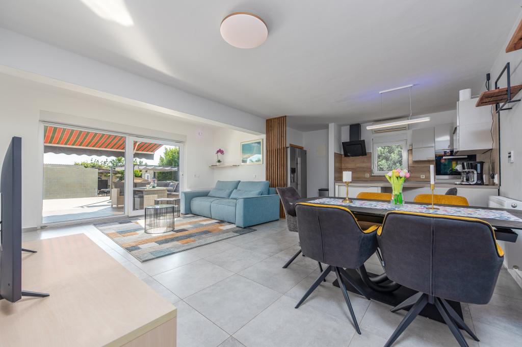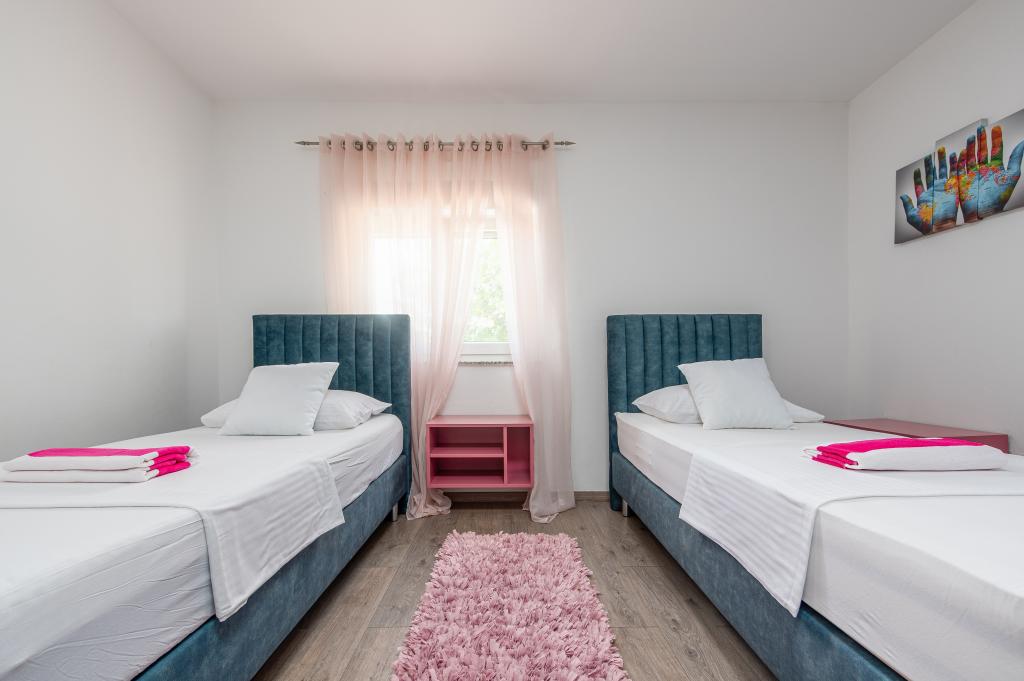 Villa Dora je moderně zařízená a plně vybavená pro strávení příjemné dovolené. K dispozici je satelitní TV, pračka a myčka a celý prostor je plně klimatizován. Skládá se ze dvou samostatných budov na stejném pozemku s celkovou kapacitou 6 plus 4 osoby. Kromě venkovního bazénu je zde kvalitní zahradní nábytek, zařízení pro děti a venkovní gril, kde si můžete připravit mnoho specialit. Dům se nachází v islámu v Řecku, malém místě poblíž Posedarje, které je rozpoznatelné dlouhou písečnou pláží Ducha svatého, ideální pro rodiny s dětmi. Milovníkům přírody doporučujeme výlety do národních a přírodních parků Paklenica, Krka, Plitvická jezera, Kornati a Vranské jezero. V Posedarje je několik vynikajících restaurací, kde si můžete pochutnat na domácích specialitách. Zařízení se nachází jen 1 km od dálnice. Staňte se našimi milými hosty a prožijte svou dovolenou daleko od městského shonu v příjemném prostředí.