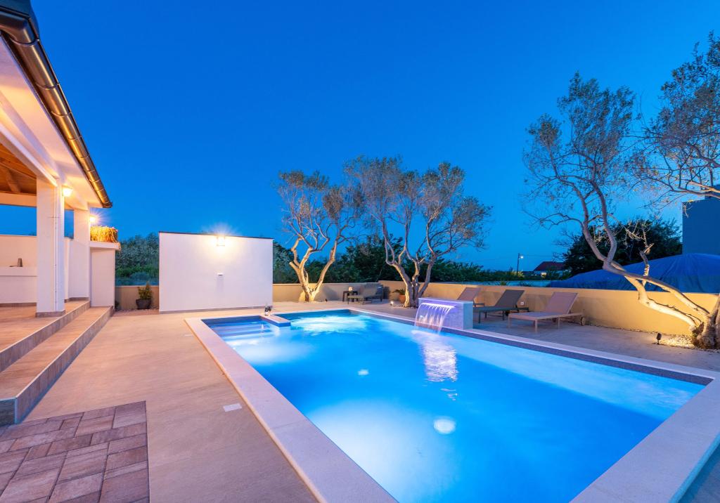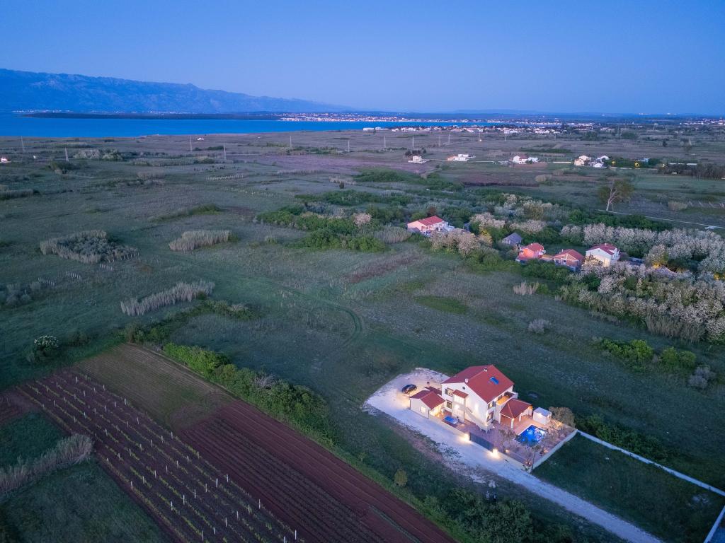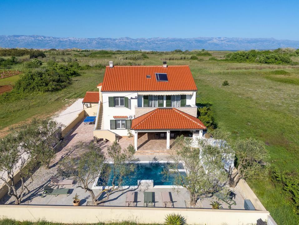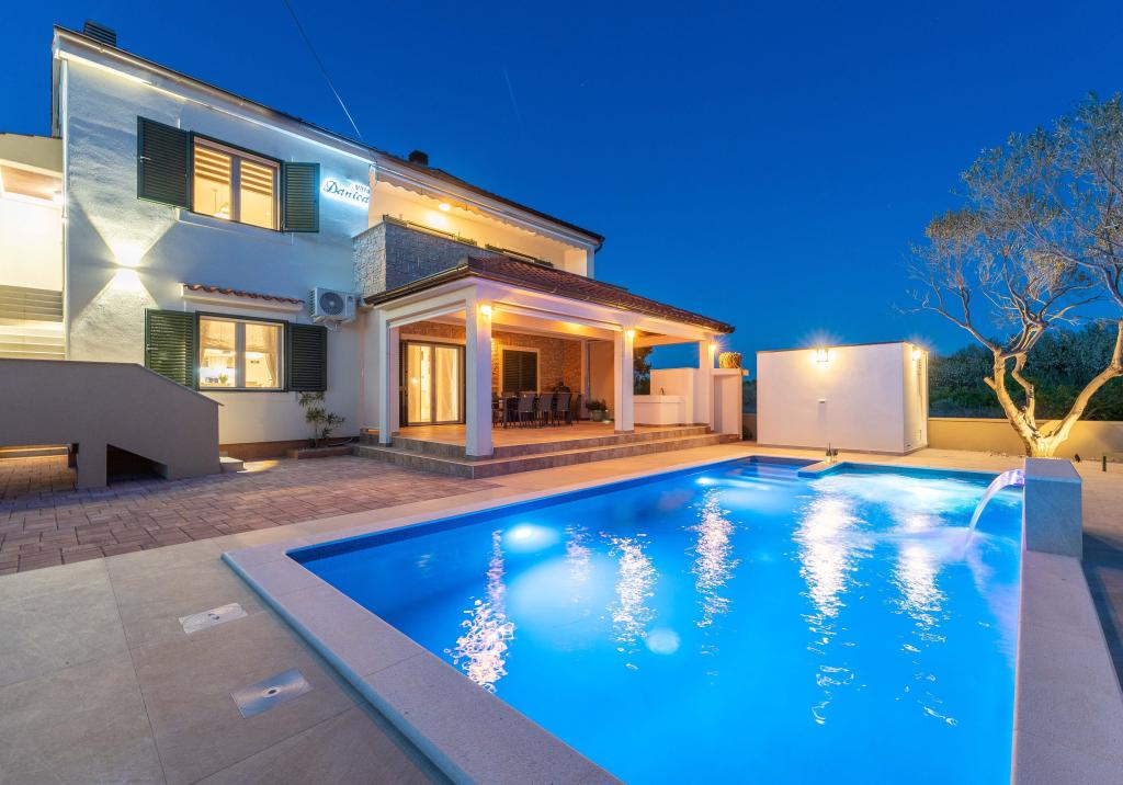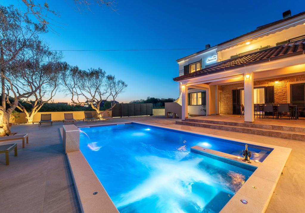 Vřelé vítání ve Ville Danica. Luxusní vila v Privlace u Zadaru, wellness oáza nabízející klimatizované ubytování se soukromým bazénem se slanou vodou, vyhřívaným bazénem, krásným výhledem na moře a prostorným balkonem. Užijte si pohodlí s přístupem na terasu, stolní tenis, kulečník, posilovnu, bezplatné soukromé parkoviště a rychlé Wi-Fi. Vila má také saunu. Těšíme se na hosty všech věkových kategorií, včetně těch nejmenších, a domácí mazlíčci jsou také povoleni. Prostorná vila nabízí plně vybavenou kuchyň s myčkou nádobí, troubou a mikrovlnnou troubou, pohodlný obývací pokoj s dostatkem místa k sezení a jídelním koutem, 4 ložnice a 5 koupelen se sprchami. Ručníky a ložní prádlo jsou k dispozici pro vaše pohodlí. Užijte si atmosféru u krbu, který je součástí ubytování. Hosté vily se mohou v Privlace a okolí věnovat různým aktivitám, jako je jízda na koni, cyklistika a pěší turistika. Nejstarší chorvatské královské město Nin je od ubytování vzdálené 4 km.