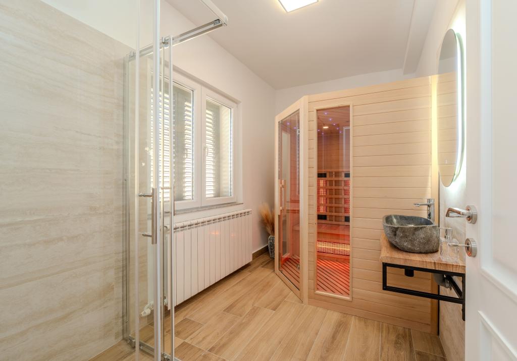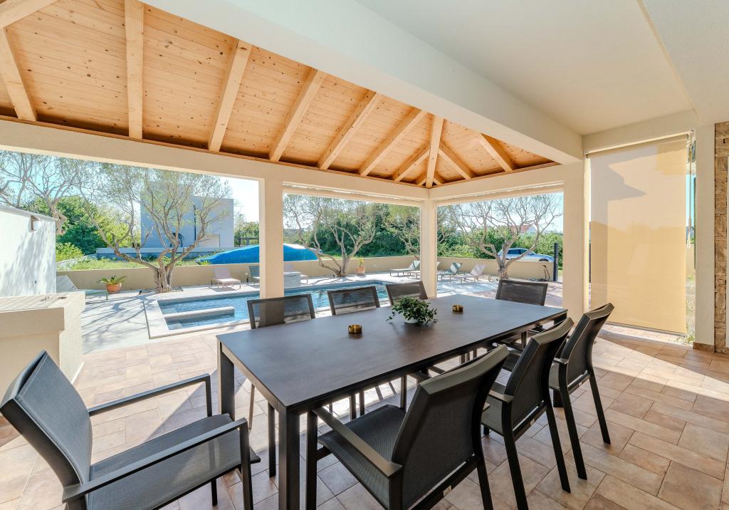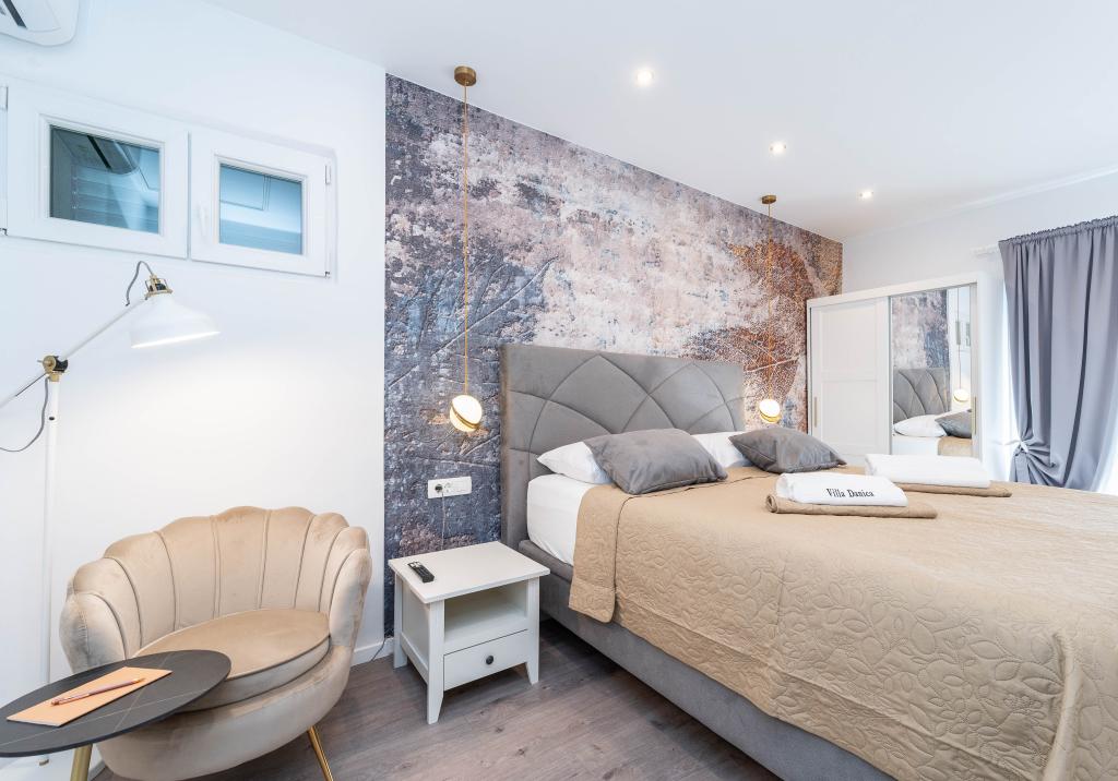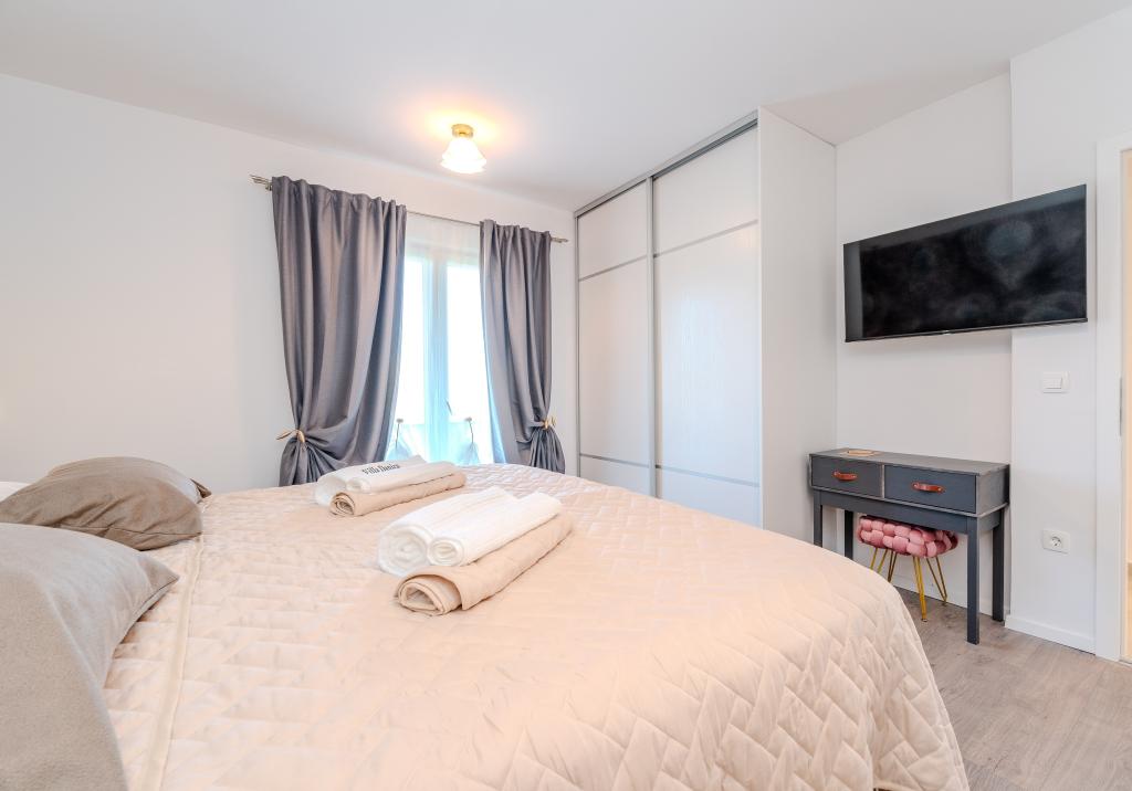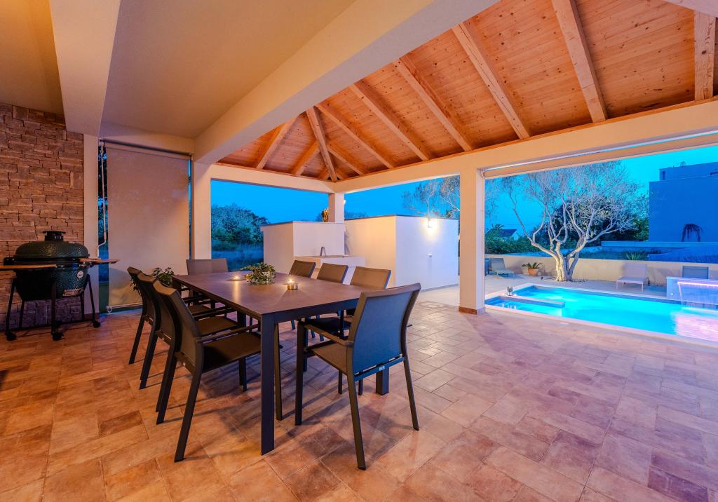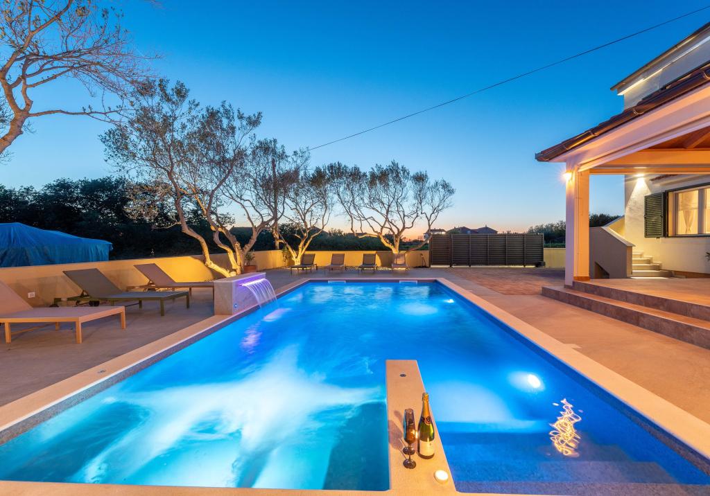 Vřelé vítání ve Ville Danica. Luxusní vila v Privlace u Zadaru, wellness oáza nabízející klimatizované ubytování se soukromým bazénem se slanou vodou, vyhřívaným bazénem, krásným výhledem na moře a prostorným balkonem. Užijte si pohodlí s přístupem na terasu, stolní tenis, kulečník, posilovnu, bezplatné soukromé parkoviště a rychlé Wi-Fi. Vila má také saunu. Těšíme se na hosty všech věkových kategorií, včetně těch nejmenších, a domácí mazlíčci jsou také povoleni. Prostorná vila nabízí plně vybavenou kuchyň s myčkou nádobí, troubou a mikrovlnnou troubou, pohodlný obývací pokoj s dostatkem místa k sezení a jídelním koutem, 4 ložnice a 5 koupelen se sprchami. Ručníky a ložní prádlo jsou k dispozici pro vaše pohodlí. Užijte si atmosféru u krbu, který je součástí ubytování. Hosté vily se mohou v Privlace a okolí věnovat různým aktivitám, jako je jízda na koni, cyklistika a pěší turistika. Nejstarší chorvatské královské město Nin je od ubytování vzdálené 4 km.