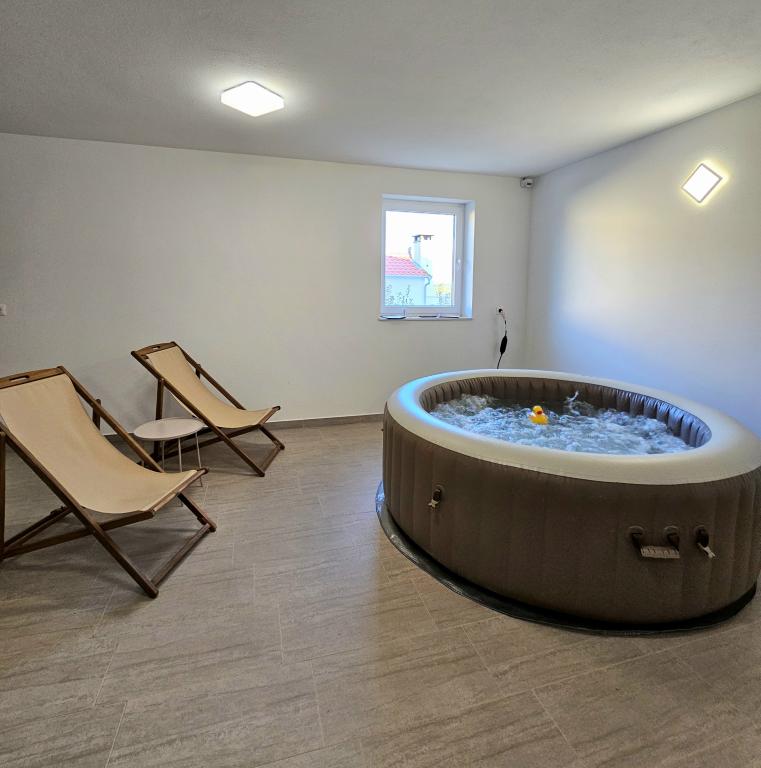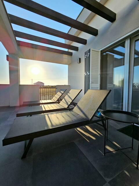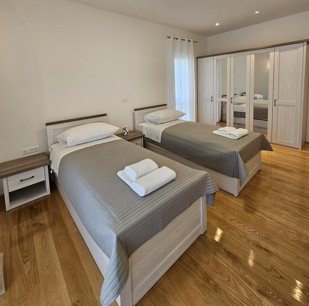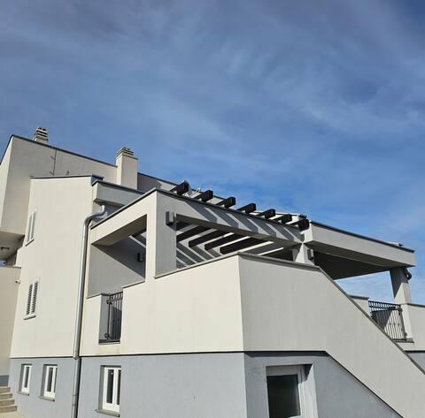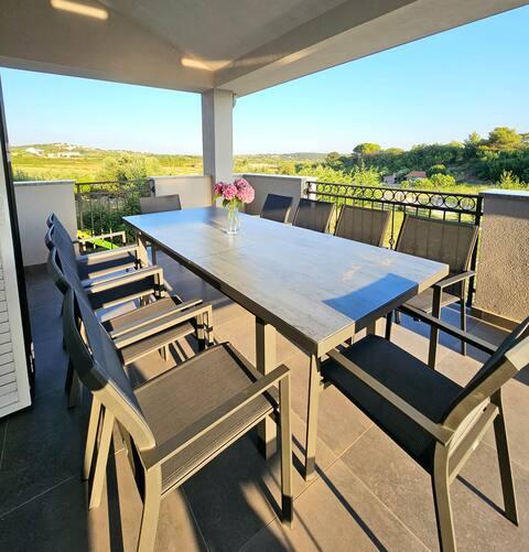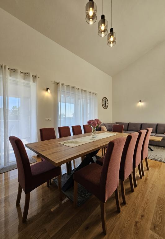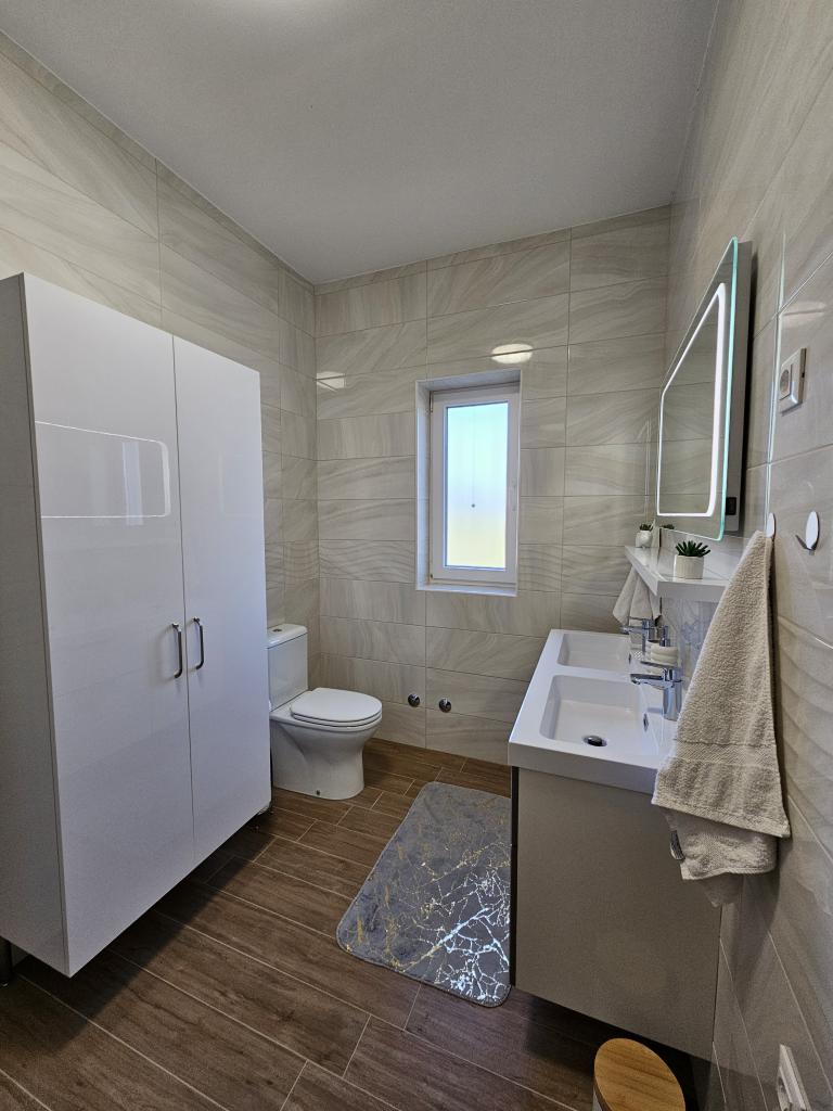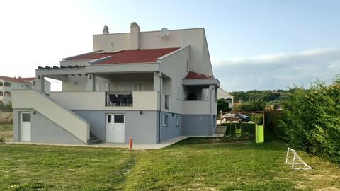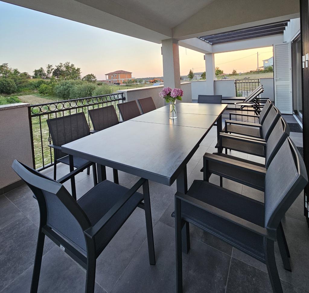 Vítejte ve vašem rodinném rekreačním domě o rozloze 324 m² nedaleko Zadaru – prostorném domě určeném pro relaxaci a zábavu. Rodiče si mohou odpočinout v soukromé vířivce nebo se aktivně věnovat plně vybavené posilovně, zatímco si děti užijí vlastní bezpečné venkovní hřiště. Dům pohodlně pojme až 10 hostů a nabízí pět pečlivě zařízených ložnic, tři moderní koupelny, dvě plně vybavené kuchyně, jídelní kout a světlý obývací pokoj s TV. Vyhrazený pracovní prostor a prádelna poskytují další pohodlí pro delší pobyty. Vyjděte ven do plně oplocené soukromé zahrady, která zajišťuje soukromí a bezpečí, ideální pro rodiny s dětmi. Vrcholem tohoto domu je venkovní bydlení se dvěma balkony s lehátky a velkou terasou s grilem, prostornou venkovní jídelní částí a relaxační zónou na opalování – ideální pro užívání si teplých dalmatských večerů. Na místě je k dispozici bezplatné soukromé parkoviště.