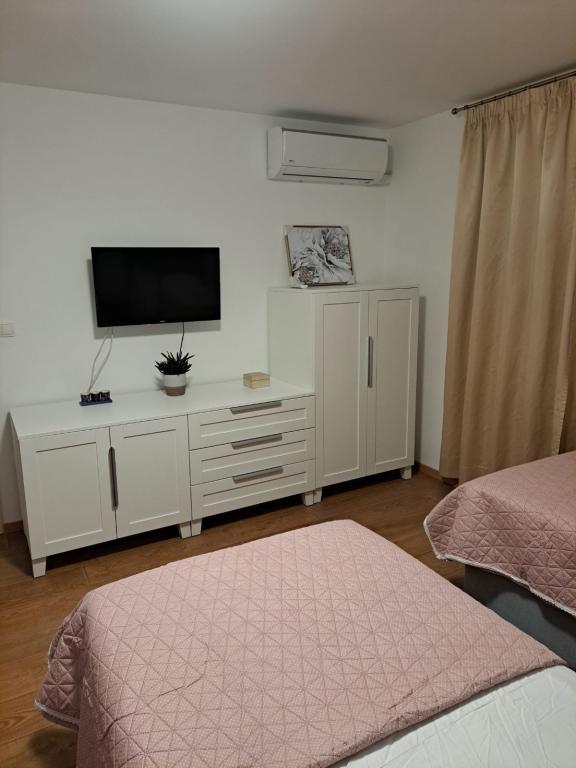 Tento nově zrekonstruovaný rodinný dům vhodný pro 7 osob se nachází nedaleko Trogiru, v okrese Seget Donji, v blízkosti hotelu Medena. Dům se nachází na pozemku o rozloze 700 m2 a má 150 m2 obytné plochy. Venkovní kuchyně se stolem pro 8 osob, venkovní toaleta, velký gril a soukromý bazén vám poskytnou vše, co potřebujete pro příjemnou a relaxační dovolenou. Celý prostor je moderně zařízený, klimatizovaný a má Wi-Fi. Vnitřní kuchyň je plně zařízená a obsahuje veškeré domácí spotřebiče. Dům má 3 moderně zařízené, velké ložnice. Každá ložnice má satelitní TV a klimatizaci. Větší koupelna je vybavena vanou a pračkou. Menší koupelna má sprchový kout. V domě je také malá posilovna. Před domem je parkování pro 3 auta. Velká veranda vám poskytne klid a relaxaci a venkovní kuchyně je místem, kde si můžete užít posezení s rodinou a přáteli. Celý dům a zahrada s bazénem jsou k dispozici hostům.