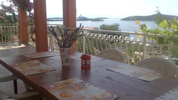 Bylo nás 8. Dům je prostorný (4 pokoje a 2 koupelny), čistý a dobře vybavený. Hostitelé jsou velmi milí (přivítali nás místními specialitami). Velká zastřešená terasa vpředu - to je místo, kde jsme snídali a užívali si krásný výhled na moře a poloostrov. Vedle je terasa s velkým zděným grilem a stolem s lavicemi, kde můžete večer při grilování pozorovat hvězdy a samozřejmě moře. Málo blízkých sousedů vytváří atmosféru klidu a soukromí. Nevýhodou je docela prudké stoupání, ale výhled to vynahrazuje. Z celého srdce to doporučujeme.