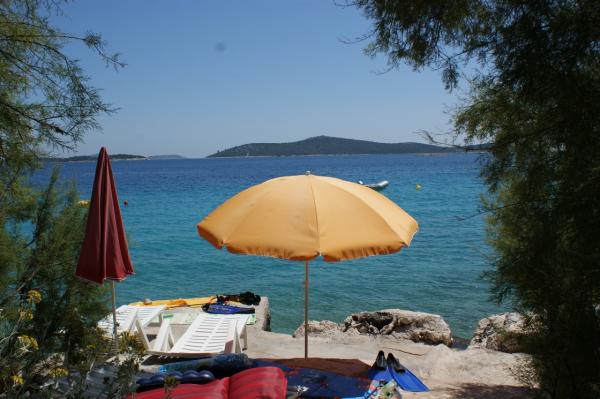 Vynikající ubytování, vynikající hostitelé, výhled na moře z krásné velké terasy, moře a pláž, jedna z nejkrásnějších na Jadranu, klidné místo pro rodinu, relaxace. Zase se vracíme