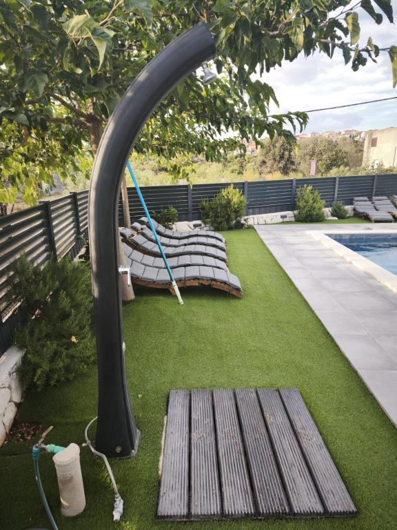 S rodinou jsme strávili 7 dní ve Ville Ante Škina. Doporučujeme ji pro klidnou, pohodovou a pohodlnou dovolenou. Dům je prostorný, s 5 ložnicemi a dvěma koupelnami, každá s vlastní pračkou. Venkovní prostor s bazénem a velkým stolem pod stříškou je skvělý pro trávení času společně. Postele a zbytek domu jsou pohodlné a čisté, kuchyň je dobře vybavená, dva hrnce a dvě pánve, sůl a základní koření. Sušák na prádlo byl velmi užitečný. Nejbližší o něco větší obchod je 15 minut jízdy. Navštívili jsme pláž Stari Trogir - 15 minut jízdy autem a nejbližší pláž Sevid, která je od domu 5 minut. Obě pláže jsou krásné, nejsou příliš přeplněné a moře je opravdu čisté. Na pláži Sevid je mini rychlé občerstvení a zmrzlina. Dvakrát jsme jeli autem do nejbližšího města Primošten, na nákupy a večeři (asi 25 minut). Měli jsme s sebou i psa, který si pobyt venku moc užíval. Hostitelé byli velmi přátelští, vstřícní a štědří.