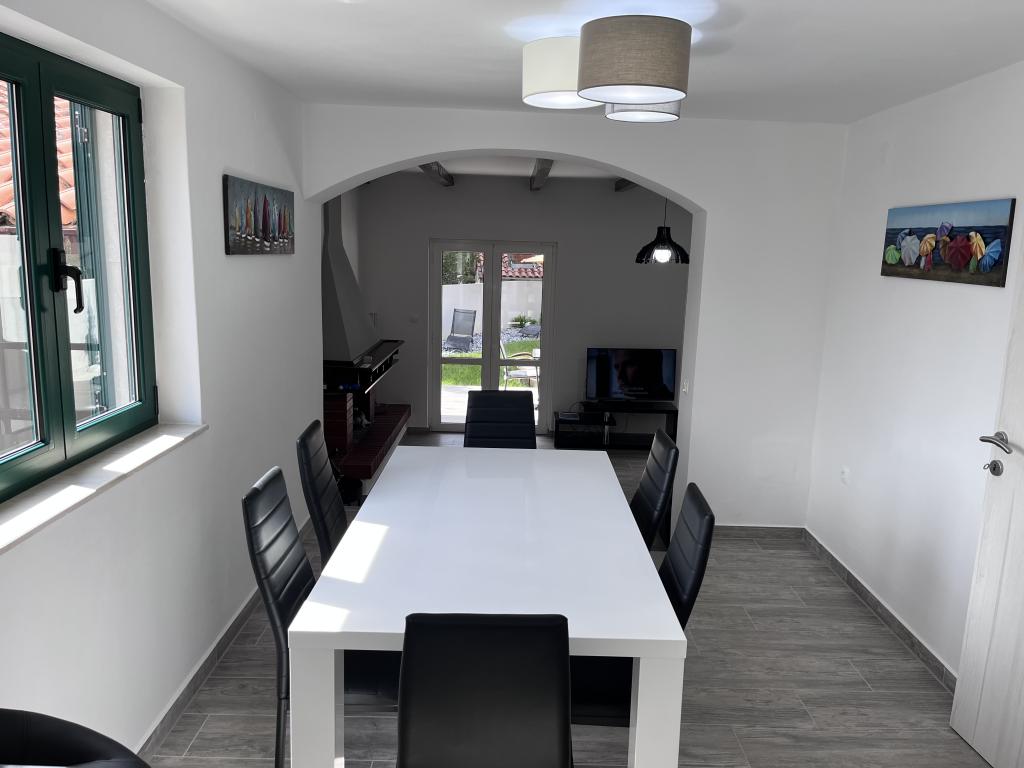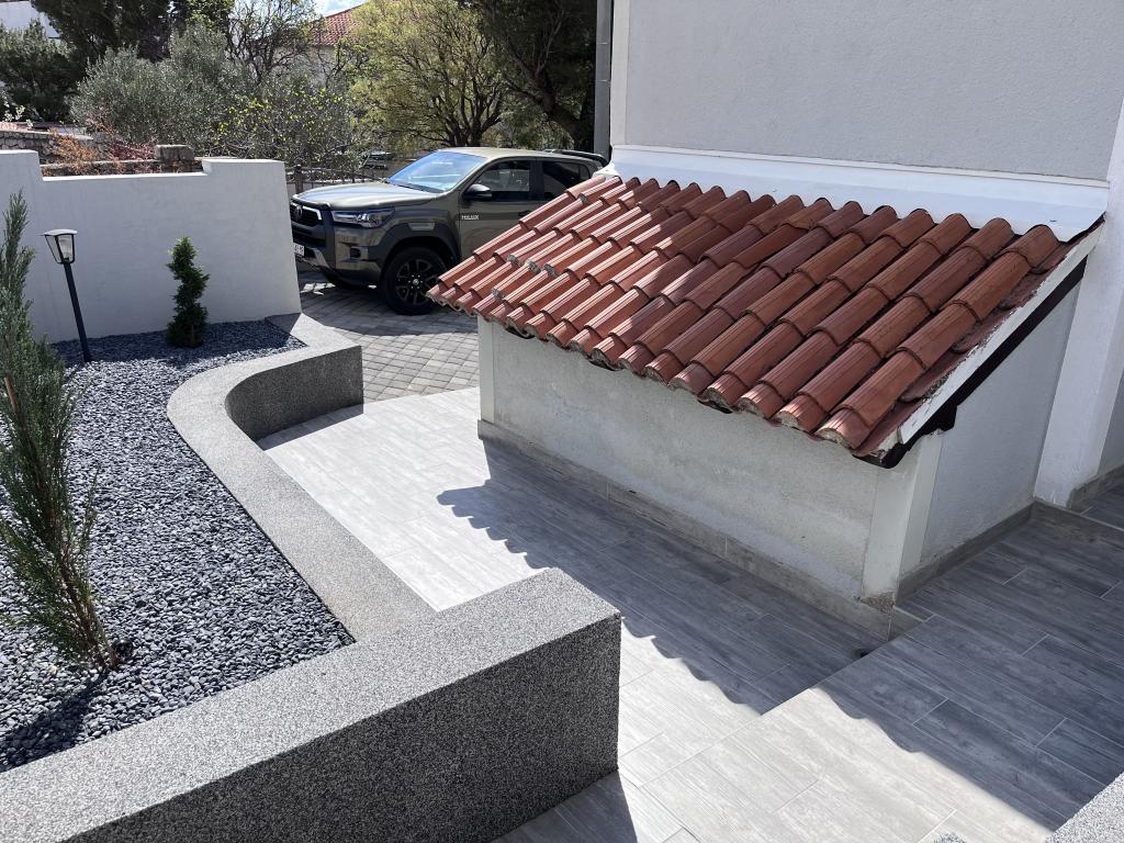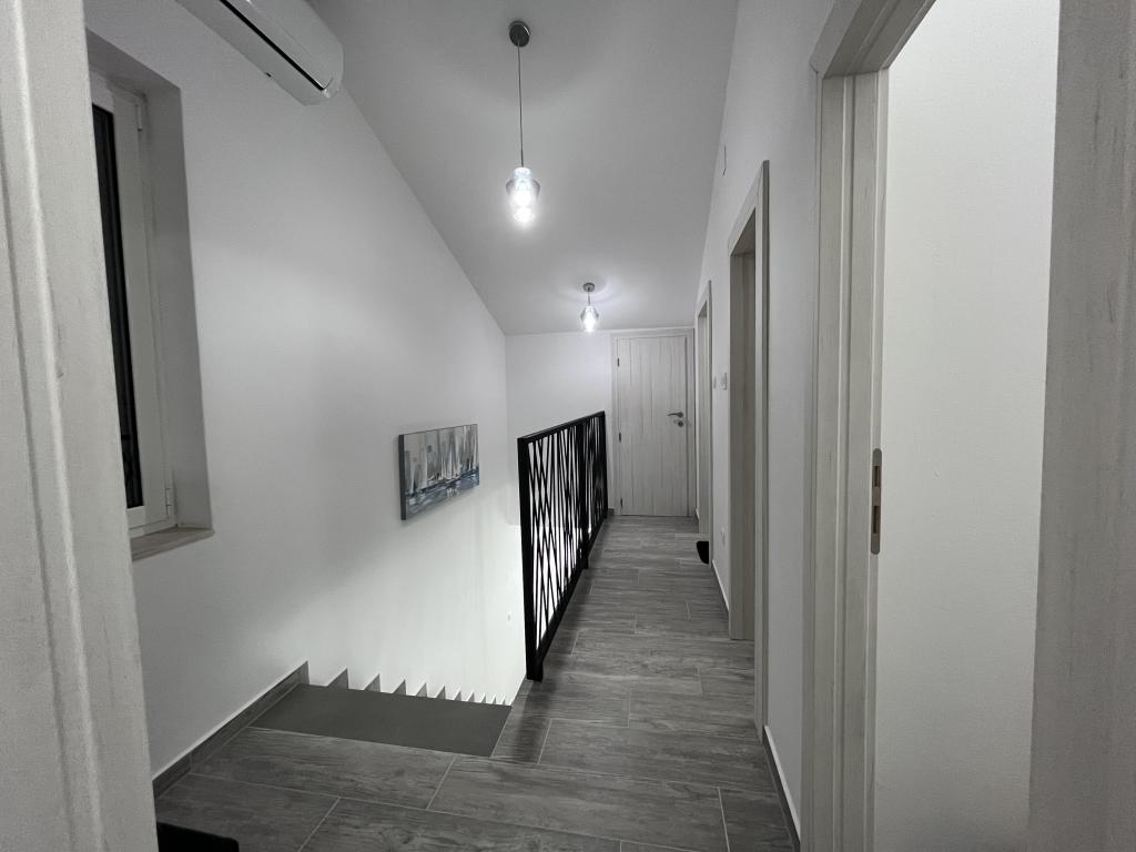 Naše krásná vila se nachází v centru Starigrad Paklenica, na hlavní silnici DC8, přesto nabízí klid a soukromí, které potřebujete pro skvělou dovolenou. Poloha vám umožňuje rychlý přístup k moři, národnímu parku Paklenica, pokud chcete objevovat různá místa, v blízkosti dálnice A1 a letiště Zadar. Naproti domu je obchod, který je otevřen každý den, restaurace jsou pár minut chůze a vše ostatní, co byste mohli potřebovat, je do 2 kilometrů (bankomaty, pošta, lékárna, čerpací stanice, lékárna...) Interiér vila je moderně řešená, kde na vás čeká dárek na uvítanou a také veškeré nezbytnosti a zařízení potřebné pro rekreační dům. Můžete relaxovat v obývacím pokoji s různými televizními programy, neomezeně surfovat na internetu nebo jednoduše využít některou z teras k opalování při pití kávy. Pokud si chcete připravovat vlastní jídla, máte k dispozici plně vybavenou kuchyň se spotřebiči a nádobím. Pokud jste něco zapomněli z kosmetiky nebo nezbytností, nebojte, máme vše potřebné. Na venkovní terase, která je ve dvoře, Vás uvítá hydromasážní vana, kterou si můžete temperovat dle vlastního přání. Pokud jste příznivci grilování, na dvoře na vás bude čekat ohniště, k