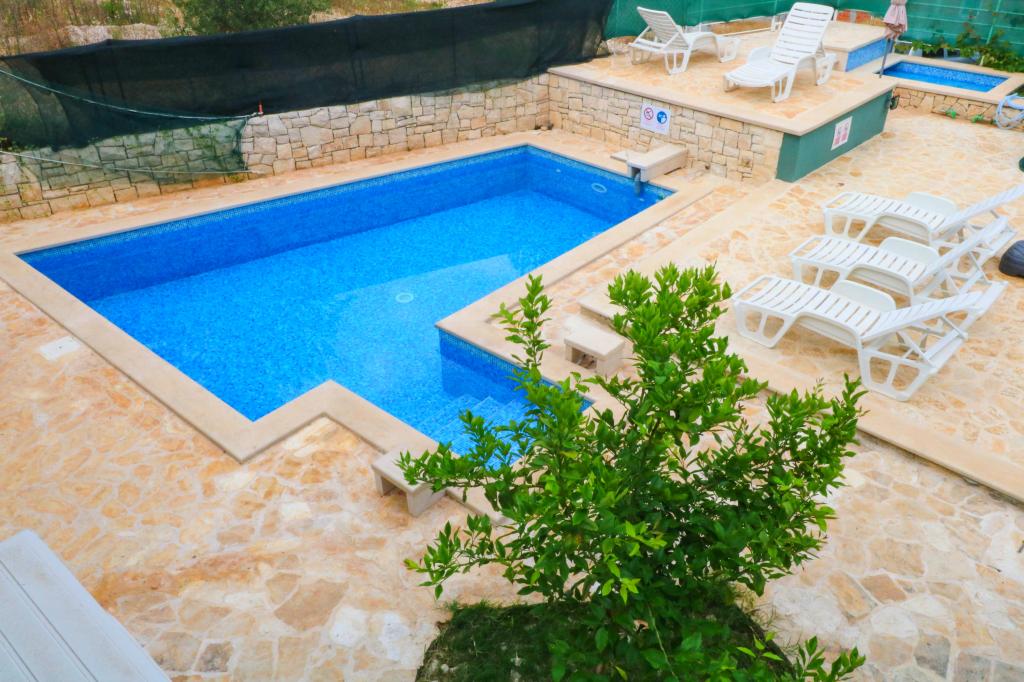 Vila Dvorník poskytuje naprosté soukromí v komfortním ubytování pro rodiny s dětmi, studentské skupiny i rodinná setkání více generací. Má výhled na moře a je jen 300 metrů od moře a pláže. Obytná plocha 110 m2 + 25 m2 terasa, velká zahrada 280 m2 krytá kamennými deskami, se 4 pokoji (8 lůžek) a dvěma bazény. Velký bazén se 4 masážními tryskami 24 m2 a hloubkou 1,5 m pro dospělé a menší bazén určený pro malé děti o velikosti 3,5 m2 a hloubce 0,5 m. Oba bazény jsou vyhřívány pomocí 10 m2 solárních kolektorů, které umožňují teplota bazénu 21 °C v květnu a říjnu. Venkovní sprcha a gril jsou umístěny v okolí domu. Dům je klimatizovaný a má bezdrátové připojení k internetu. V okolí domu jsou tři parkovací místa. Domácí mazlíčci jsou vítáni.