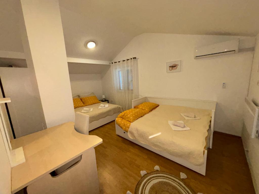Plně vybavený rekreační dům se nachází na kopci obklopeném zelení a květinami s krásným výhledem na Záhřeb a okolí. Kapacita je 8 osob. Skládá se ze dvou ložnic; manželská postel a jednolůžko a ve druhém pokoji manželská postel a manželská postel s oddělenými matracemi a pohovka v obývacím pokoji. Dvě koupelny. Plně vybavená kuchyň s lednicí s malým mrazákem, myčkou nádobí, kávovarem, troubou... a jídelním stolem. Velká finská sauna. Elektrické šipky. Velká krytá terasa se stolem a zahradním nábytkem, která nabízí krásný výhled, štěbetání ptáků a velký gril. Parkování pro dvě auta a wi-fi jsou zahrnuty v ceně pronájmu. V letních měsících je k dispozici vířivka a další lehátka. V oblasti se můžete věnovat pěší turistice, procházkám, cyklistice, rybaření, návštěvě místa s nejrychlejším autem na světě, Adrenalin Parku, a vychutnání si místní gastronomie.