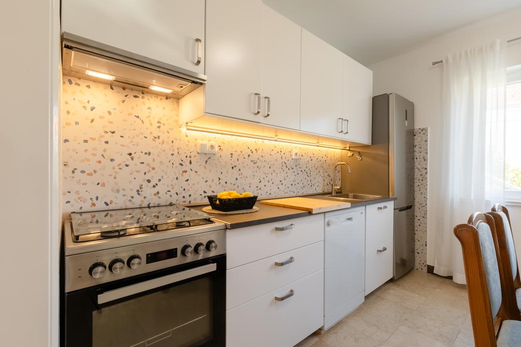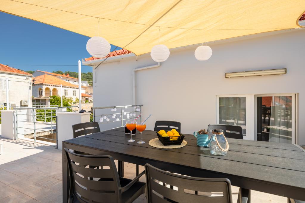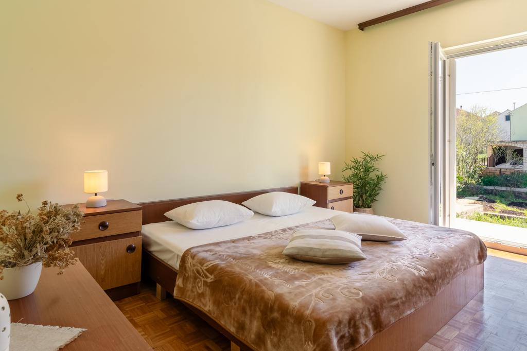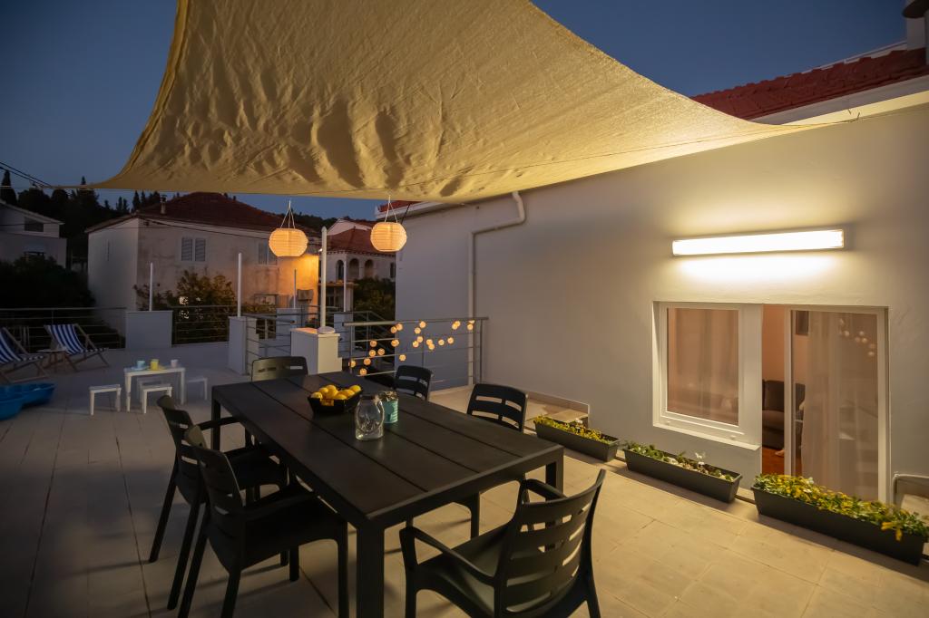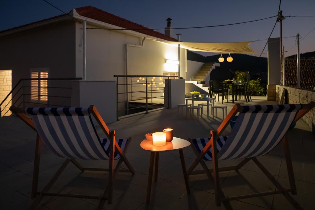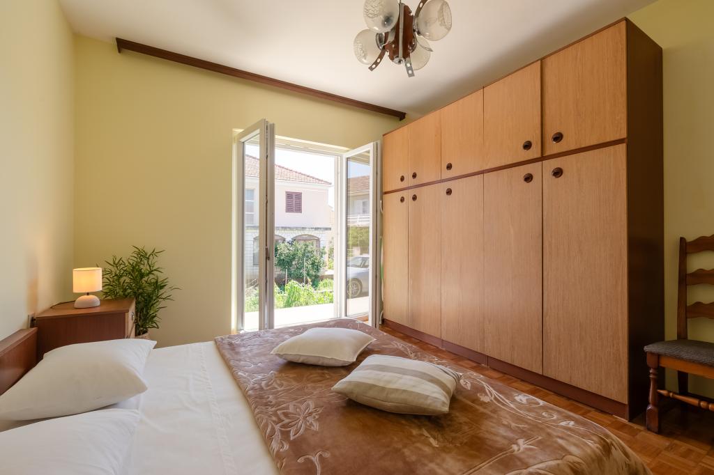 Tento velký samostatně stojící rodinný dům se nachází v klidné části Vela Luky, necelých pět minut od centra, a nabízí 3 ložnice, plně vybavenou kuchyň s myčkou nádobí a troubou, velký obývací pokoj, koupelnu se sprchovým koutem, velkou terasu a 2 soukromá parkovací místa. K dispozici je bezplatné Wi-Fi, klimatizace v obývacích pokojích, pračka, smart TV, fén a žehlička. Ručníky a povlečení jsou v ceně. Celý objekt s velkou zahradou je vám k dispozici. Ostrov Korčula je rájem pro cyklisty a tento dům má úschovnu kol.