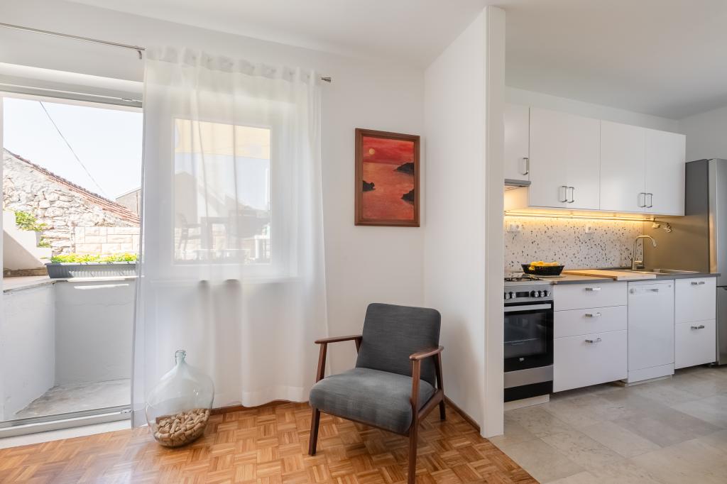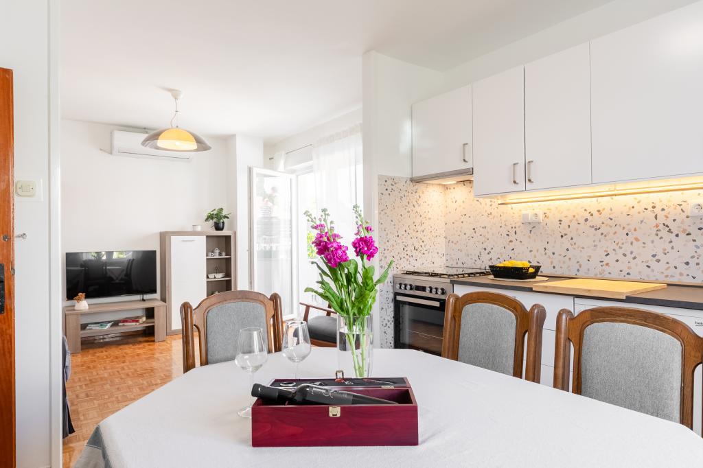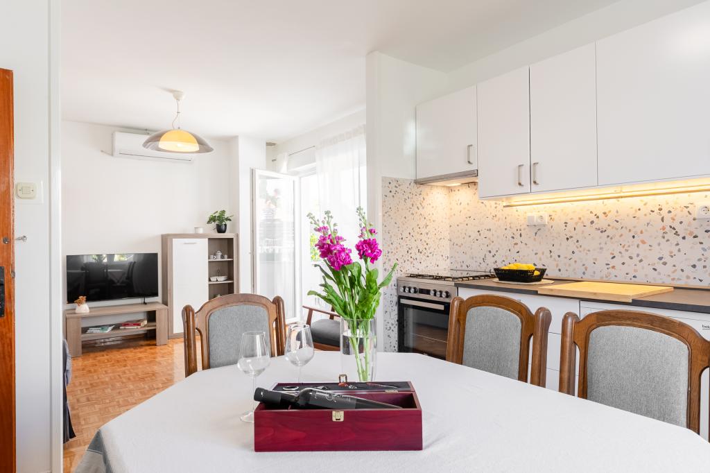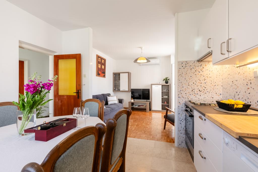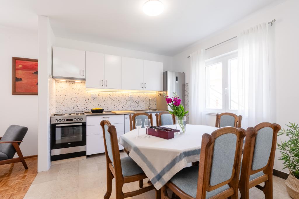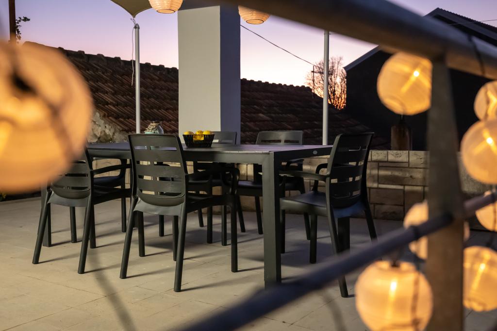 Tento velký samostatně stojící rodinný dům se nachází v klidné části Vela Luky, necelých pět minut od centra, a nabízí 3 ložnice, plně vybavenou kuchyň s myčkou nádobí a troubou, velký obývací pokoj, koupelnu se sprchovým koutem, velkou terasu a 2 soukromá parkovací místa. K dispozici je bezplatné Wi-Fi, klimatizace v obývacích pokojích, pračka, smart TV, fén a žehlička. Ručníky a povlečení jsou v ceně. Celý objekt s velkou zahradou je vám k dispozici. Ostrov Korčula je rájem pro cyklisty a tento dům má úschovnu kol.