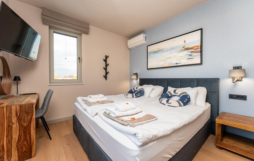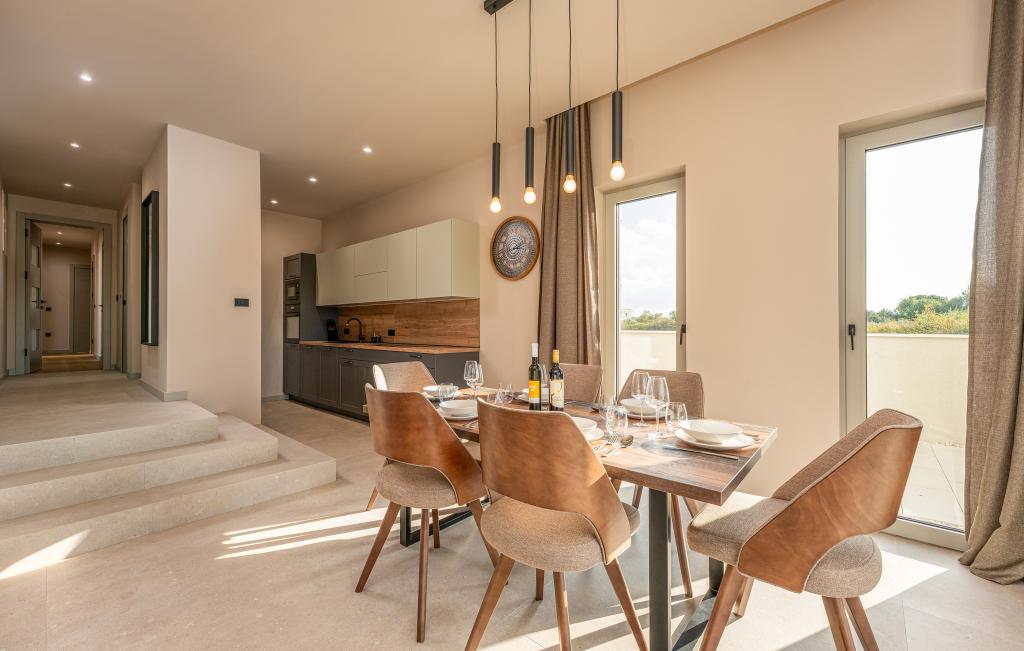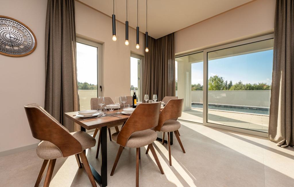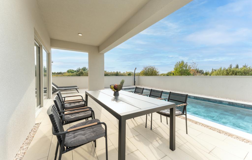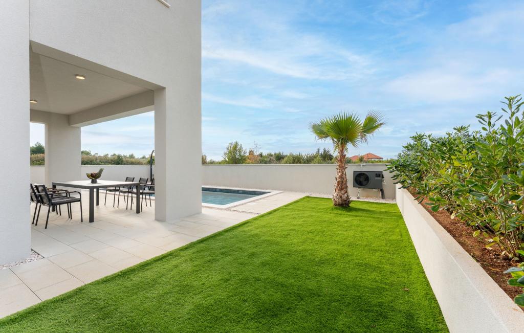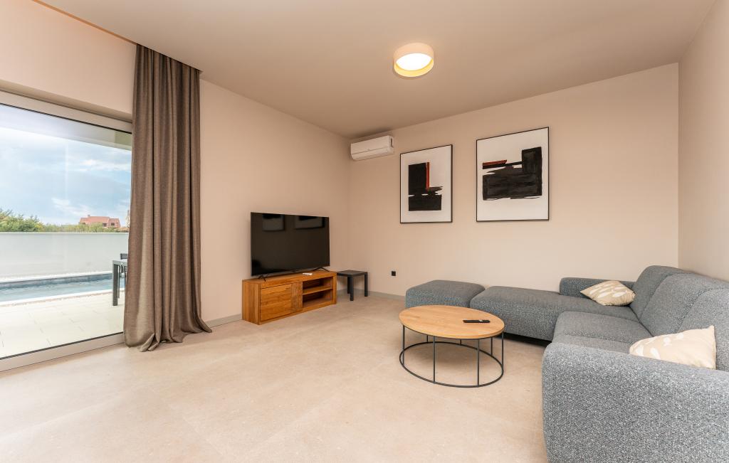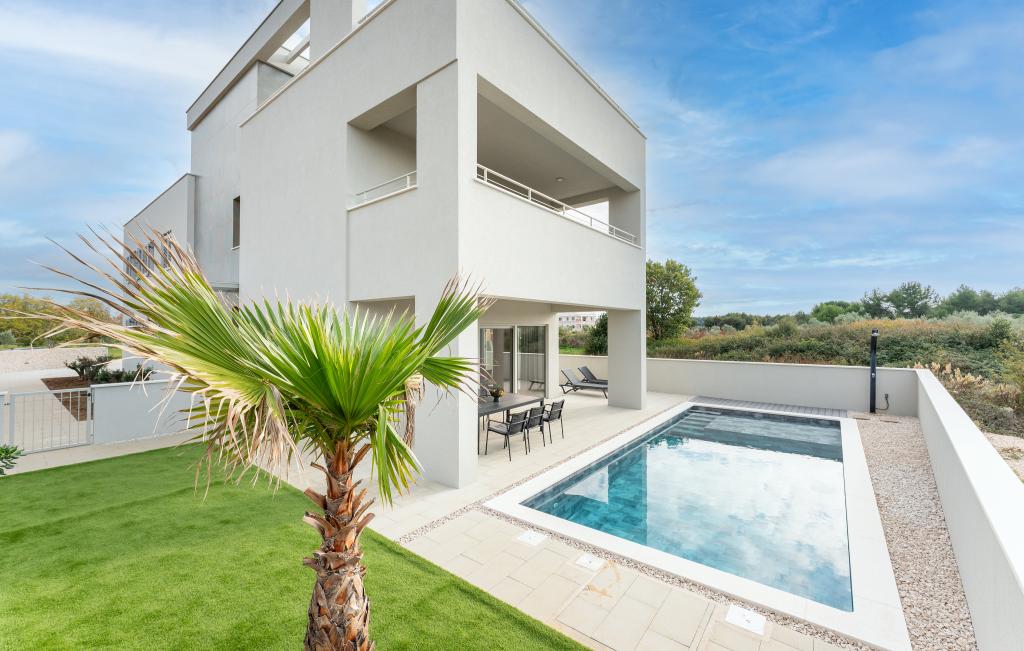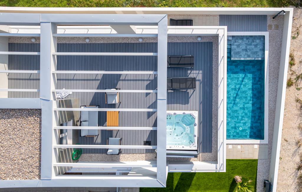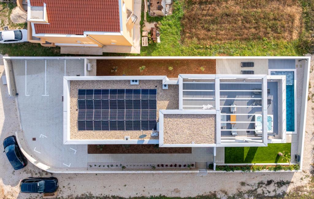 Dům o rozloze přibližně 270 m² se nachází v Zatonu, 12 km severozápadně od Zadaru. Budova je nová, dokončená v červnu 2025. V oploceném dvoře se nacházejí 4 parkovací místa, 2 nabíjecí stanice pro elektromobily, vyhřívaný bazén o rozloze 30 m² a velká terasa, kde si můžete užívat stín až do odpoledních hodin. Dům má dva apartmány, identické dispozičně, každý s obývacím pokojem, plně vybavenou kuchyní, 3 ložnicemi, 2 koupelnami a další toaletou. Všechny pokoje jsou klimatizované a každý je vybaven chytrou televizí. Dům je určen pro 12 osob. PS5 se nachází v dětském pokoji na každém patře domu. Na střeše domu se nachází terasa s výhledem na moře, další kuchyňský kout, zahradní nábytek a masážní vana pro potěšení během dne i večera. Naše zařízení si můžete užívat s rodinou a/nebo přáteli a být společně, ale také samostatně (každý ve svém vlastním apartmánu), když to potřebujete. Přes den si jistě užijete bazén a stín, který poskytuje spodní terasa, zatímco večer si užijete střešní terasu.